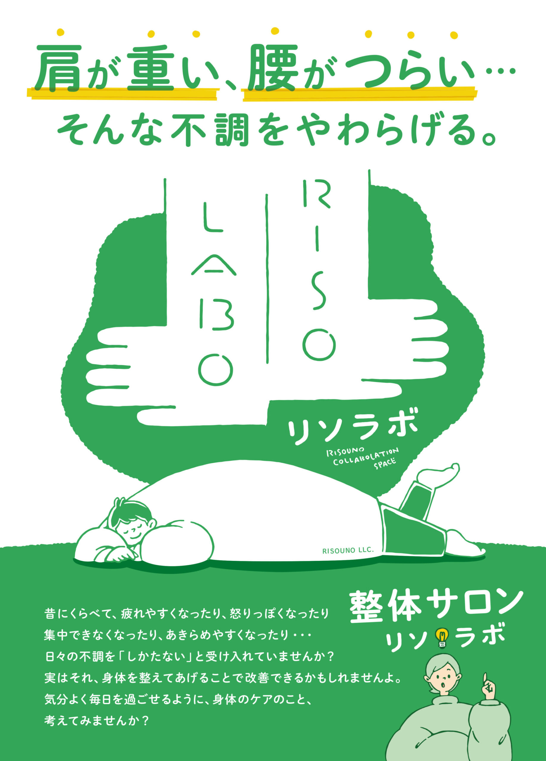 整体サロンリソラボ 【整体サロンリソラボチラシ】肩が重い、腰がつらい・・・ そんな不調をやわらげる。 掲載期間:2026年2月1日〜2026年7月31日 新潟市 生活サービス 画像をクリックして拡大 prev next セール・新店情報を見逃さない! ガタチラをホーム画面に追加して、 最新情報をすぐチェック▶追加方法はかんたん♪ 関連 子守付き整体なら、小さい子がいても安心して受けられるわね!