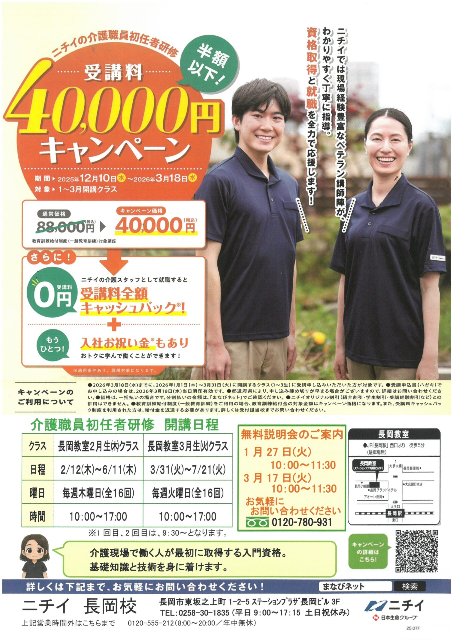 【ニチイ学館長岡支店チラシ】三条教室 受講料40,000円キャンペーン