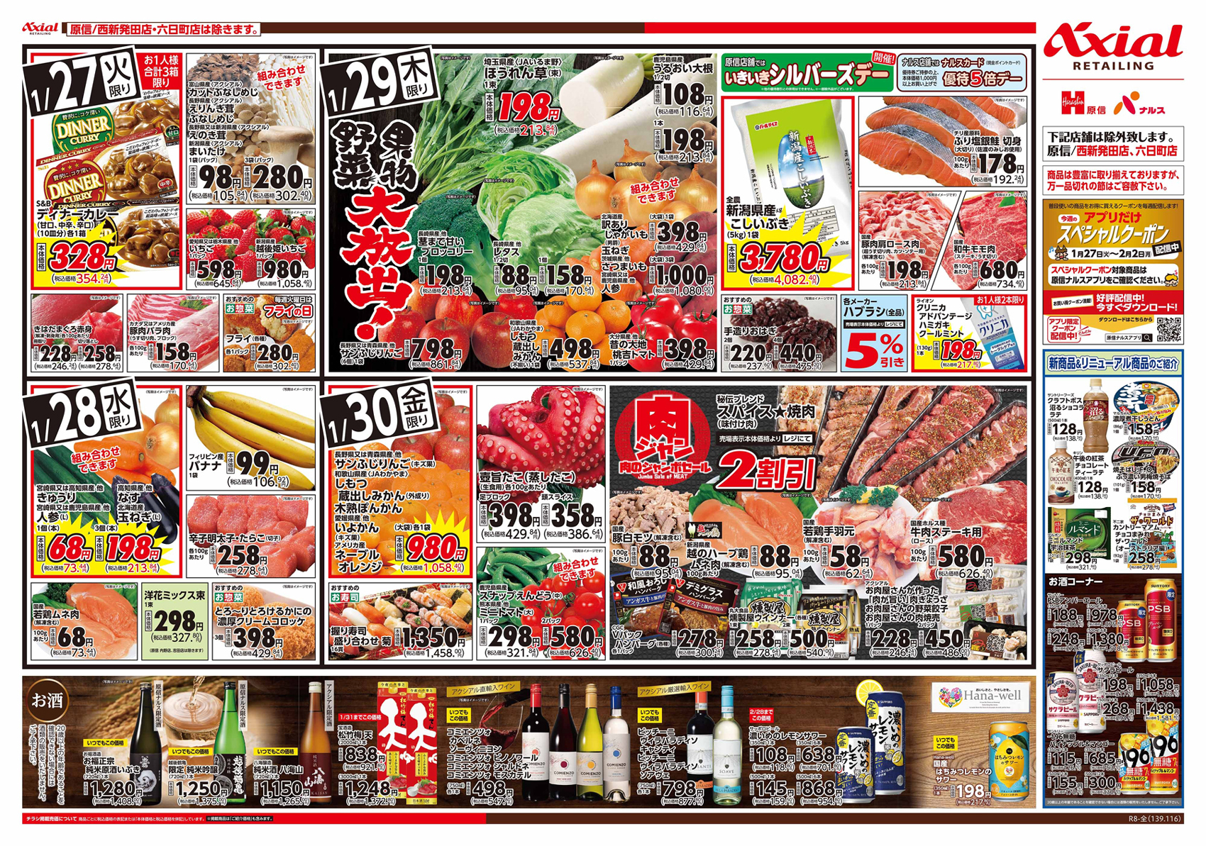 原信ナルス 【原信ナルスチラシ】暮らし応援価格/恵方巻 掲載期間:2026年1月27日〜2026年1月30日 上越中越新潟市下越 スーパー原信ナルス 目次 全店 西新発田店 全店 画像をクリックして拡大 prev next 対象:全店(西新発田店・六日町店除く) 西新発田店 画像をクリックして拡大 prev next 対象:西新発田店のみ セール・新店情報を見逃さない! ガタチラをホーム画面に追加して、 最新情報をすぐチェック▶追加方法はかんたん♪ 関連 恵方巻予約しなくちゃ♪