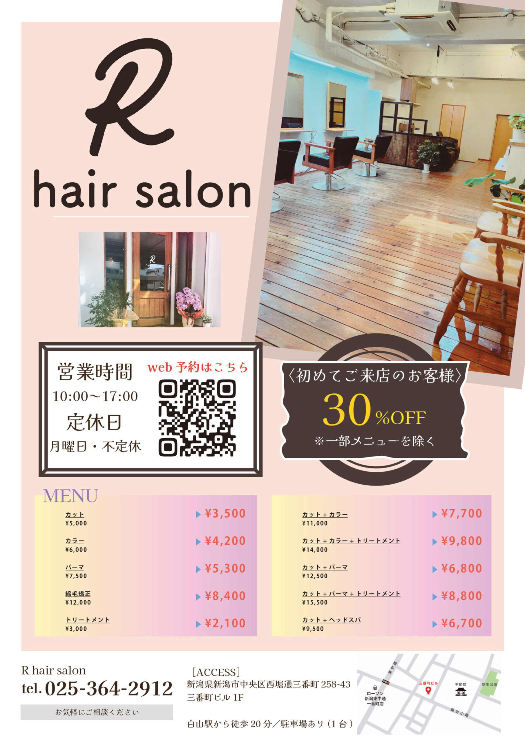 【R heir salonチラシ】初めてご来店のお客様 30%OFF