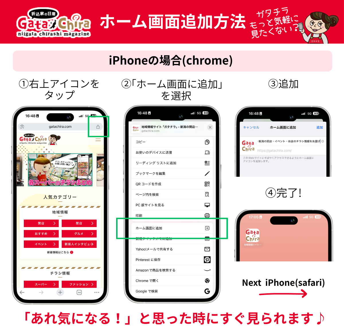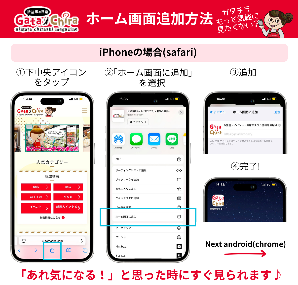 ガタチラをホーム画面に追加して、 最新情報をすぐチェック