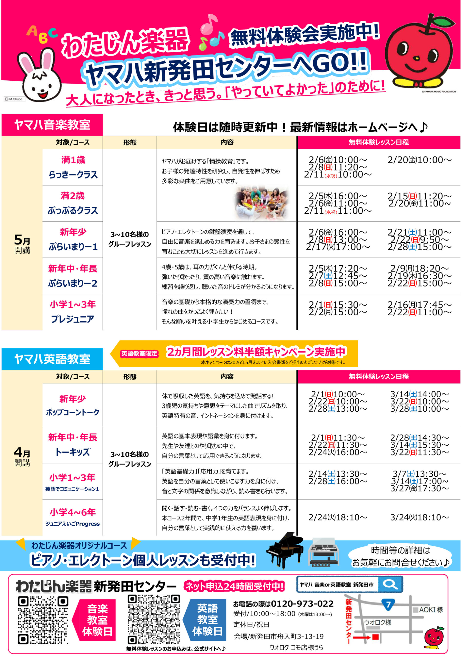 【わたじん楽器新発田センターチラシ】ヤマハ音楽・英語教室生徒募集