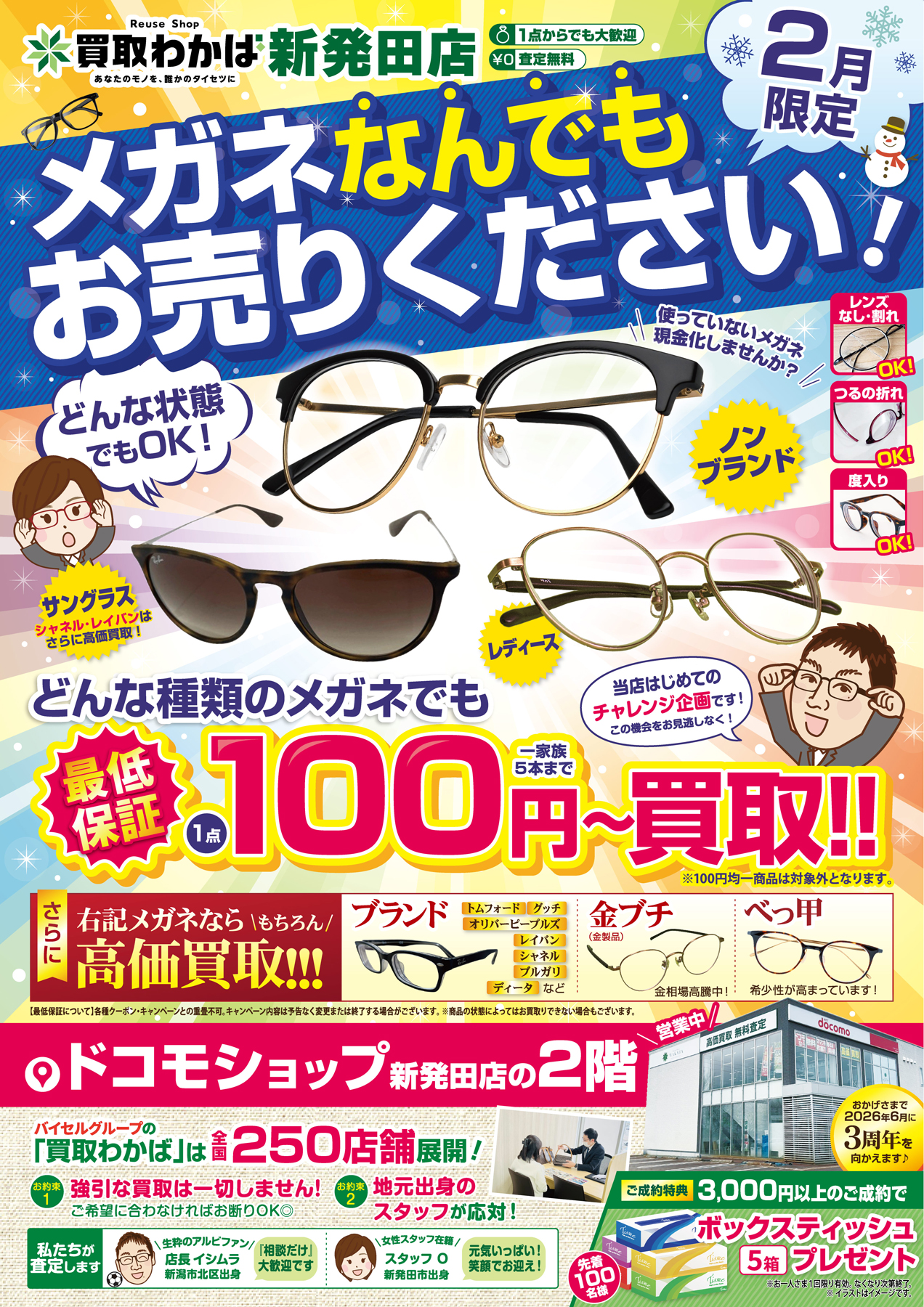 【買取店わかば新発田店チラシ】メガネ“なんでも“ お売り下さい!どんな種類のメガネでも『最低保証1点100円~』買取!