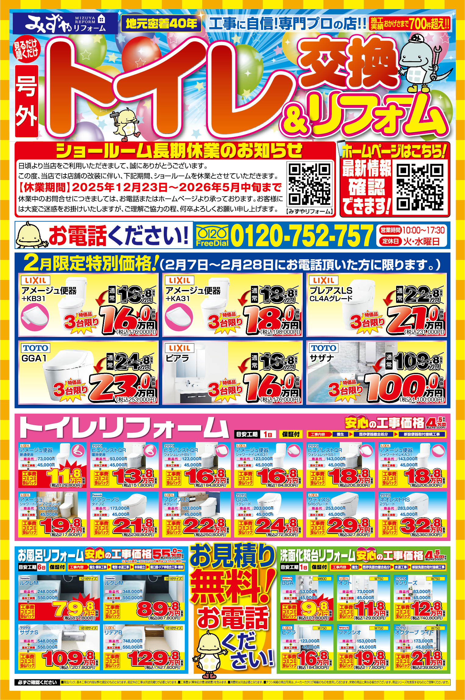 TOP > チラシ情報 > 生活サービス > 【みずやリフォームチラシ】トイレ交換&リフォーム