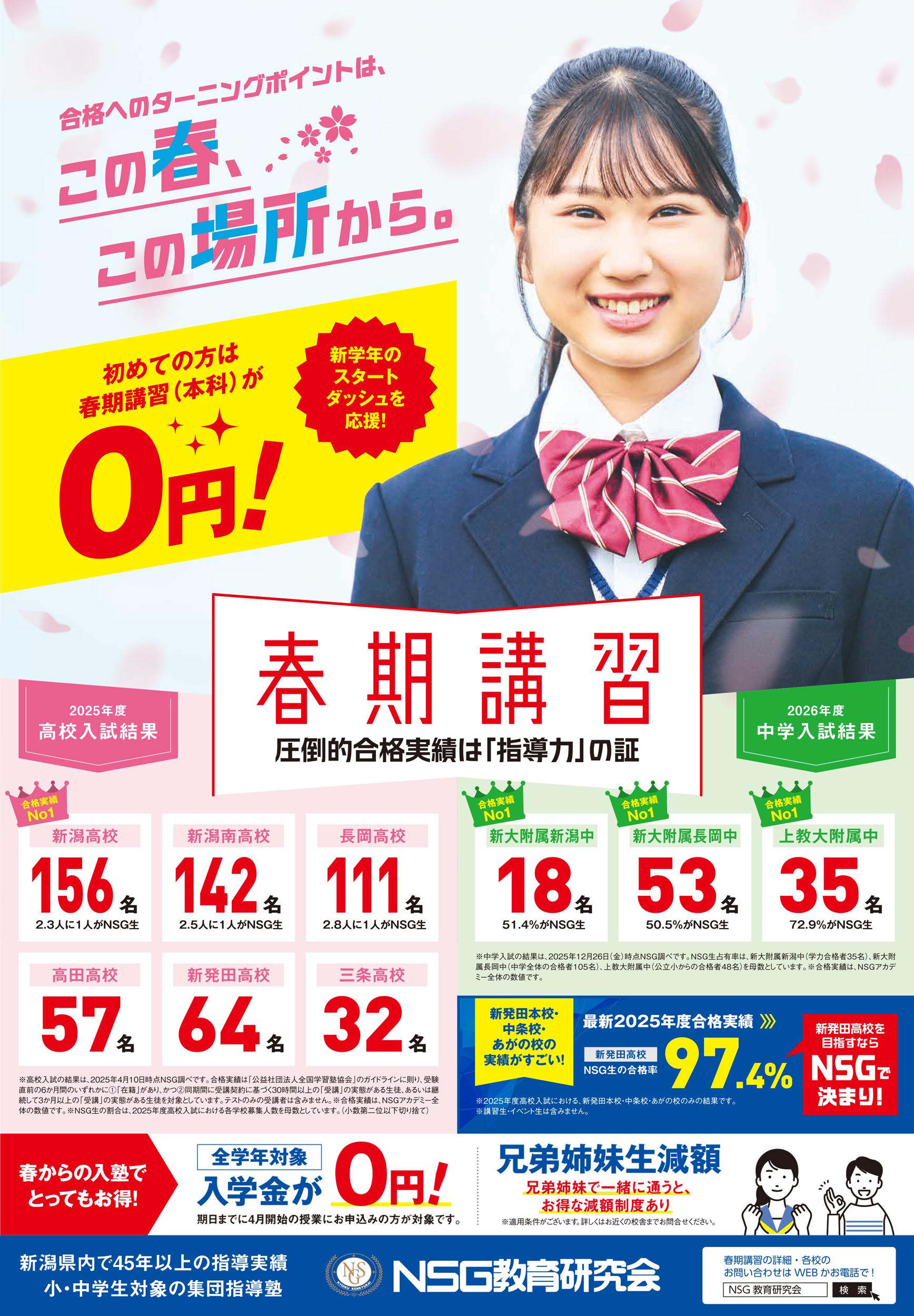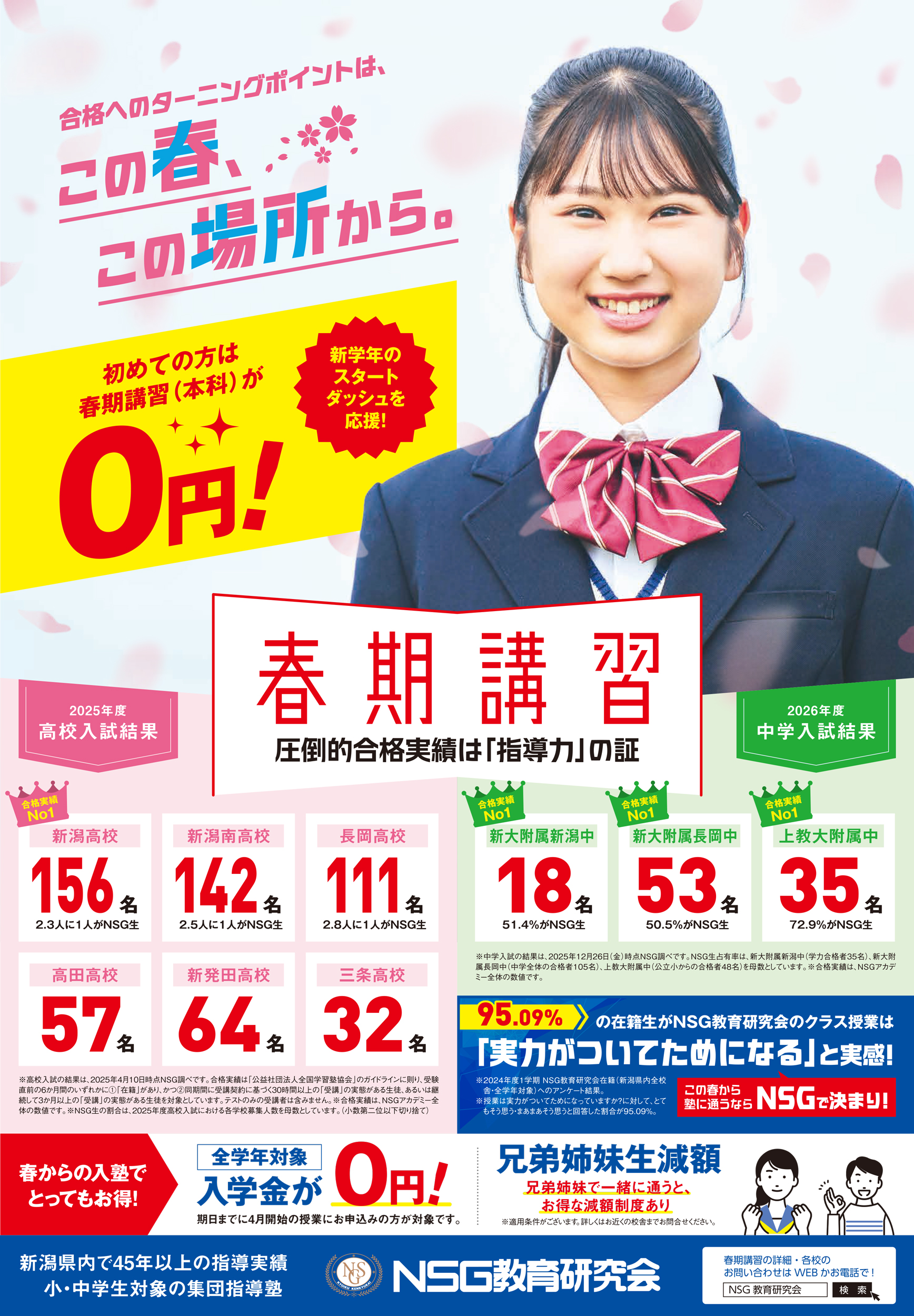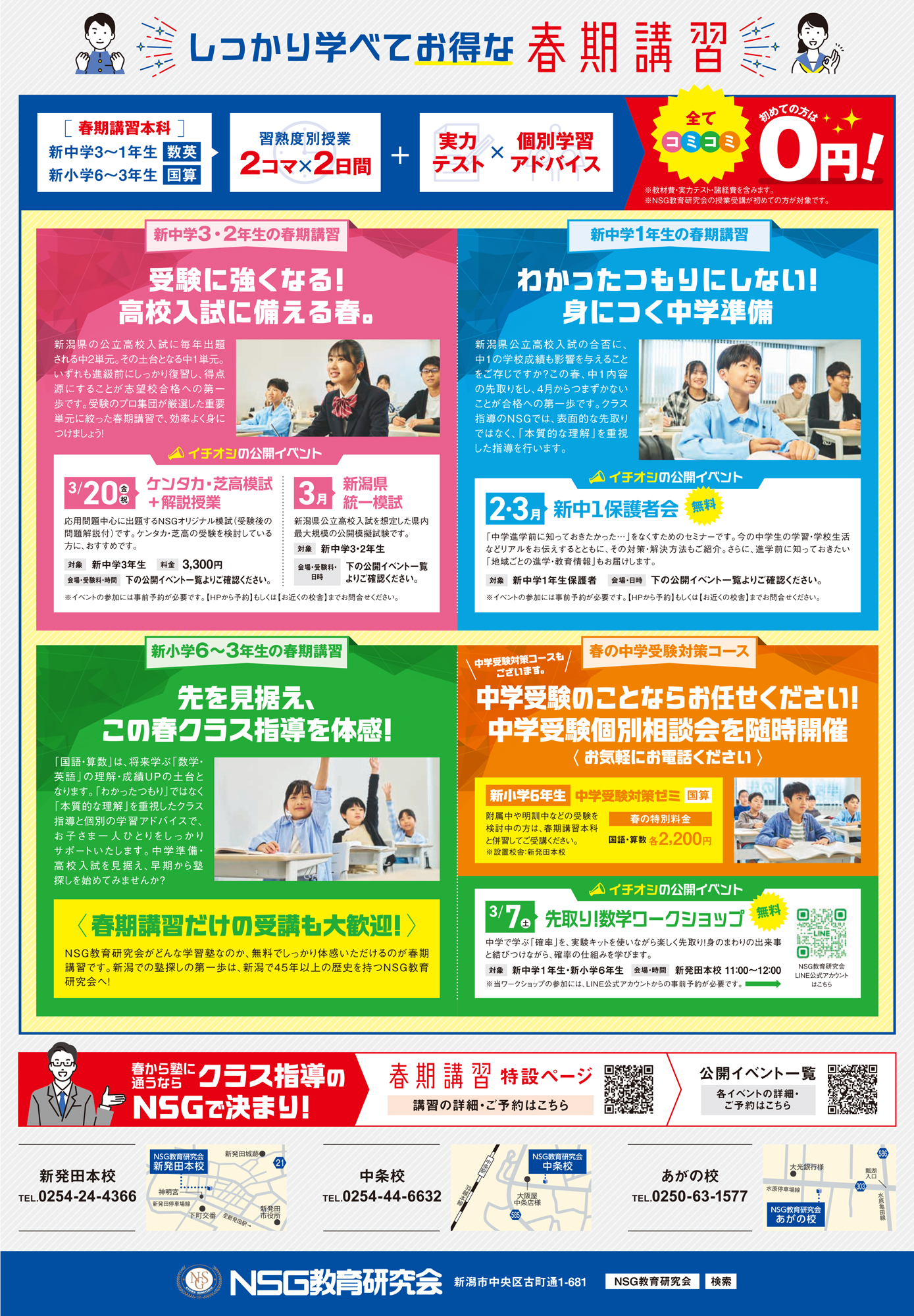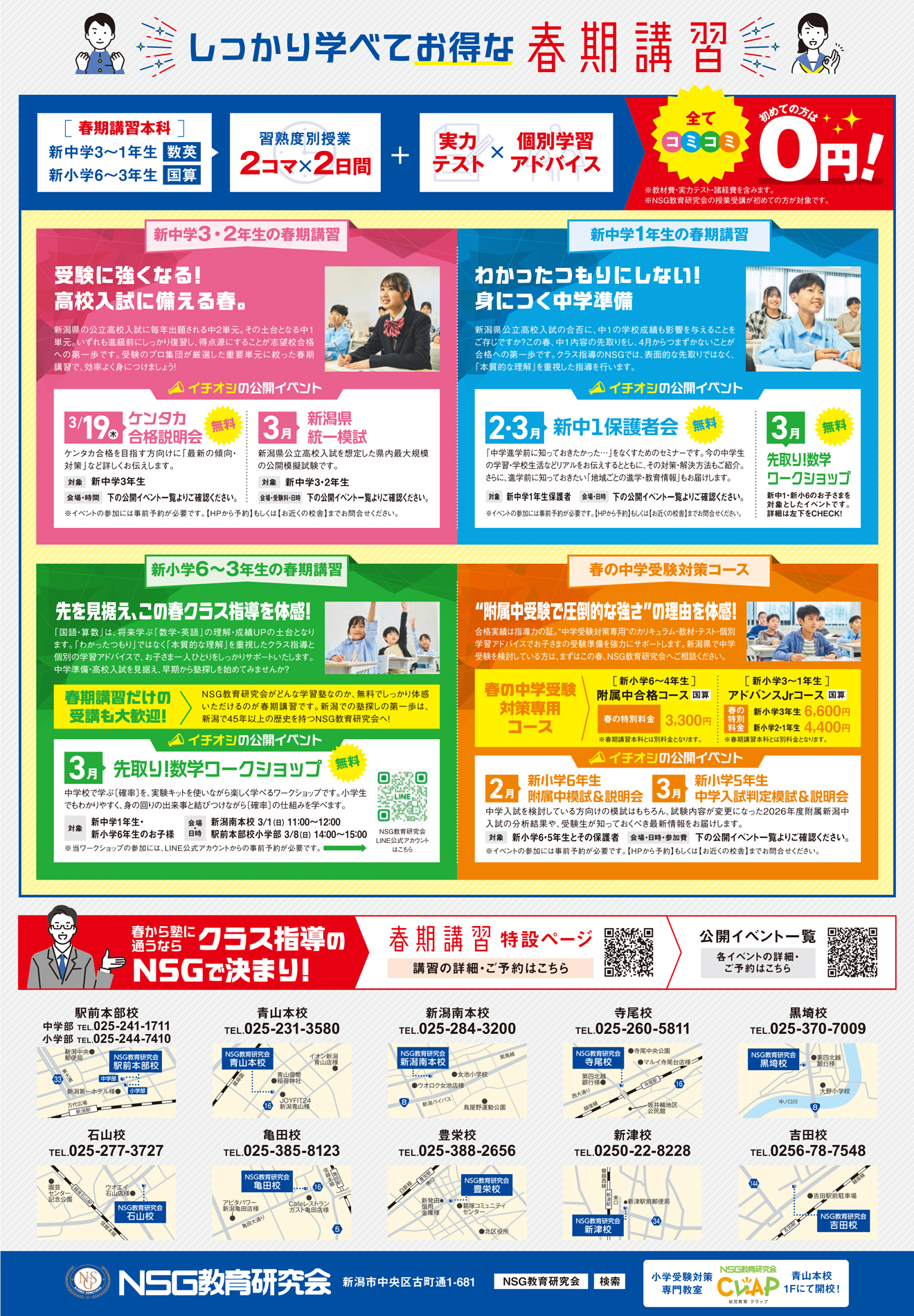 TOP > チラシ情報 > 塾・スイミング > 【NSG教育研究会チラシ】春期講習