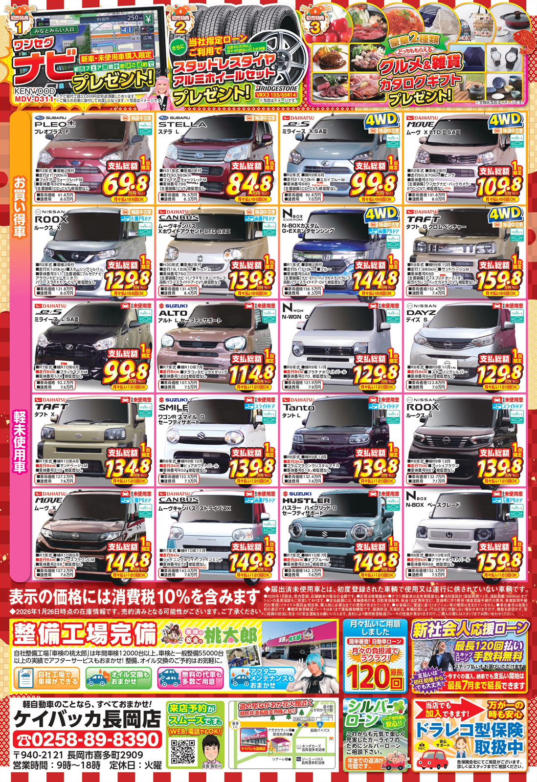 TOP > チラシ情報 > 車・カー用品 > 【ケイバッカ長岡店チラシ】初売第2弾