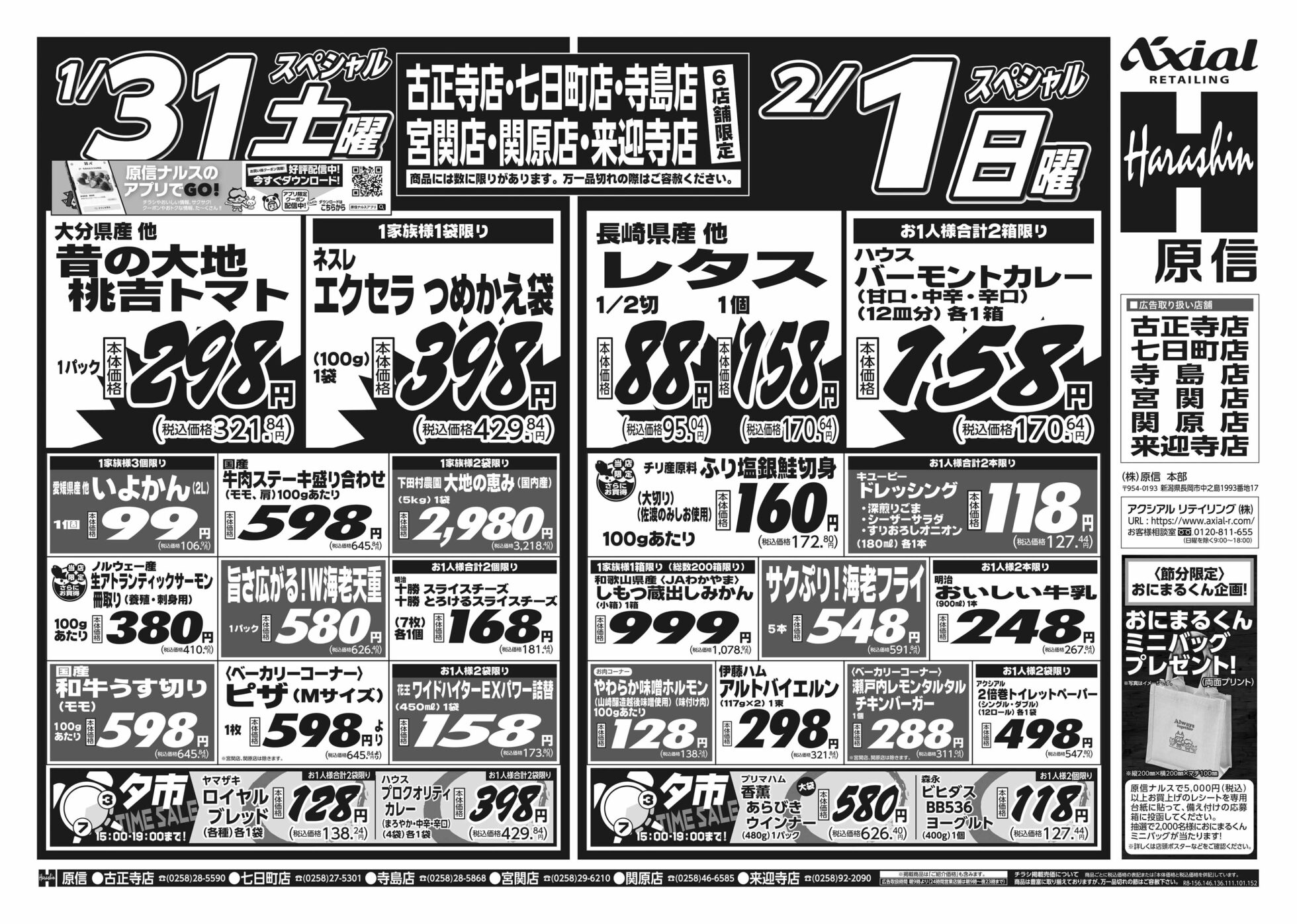 【原信ナルス古正寺店・七日町店・寺島店・宮関店・関原店・来迎寺店チラシ】土曜スペシャル/日曜スペシャル/月曜スペシャル
