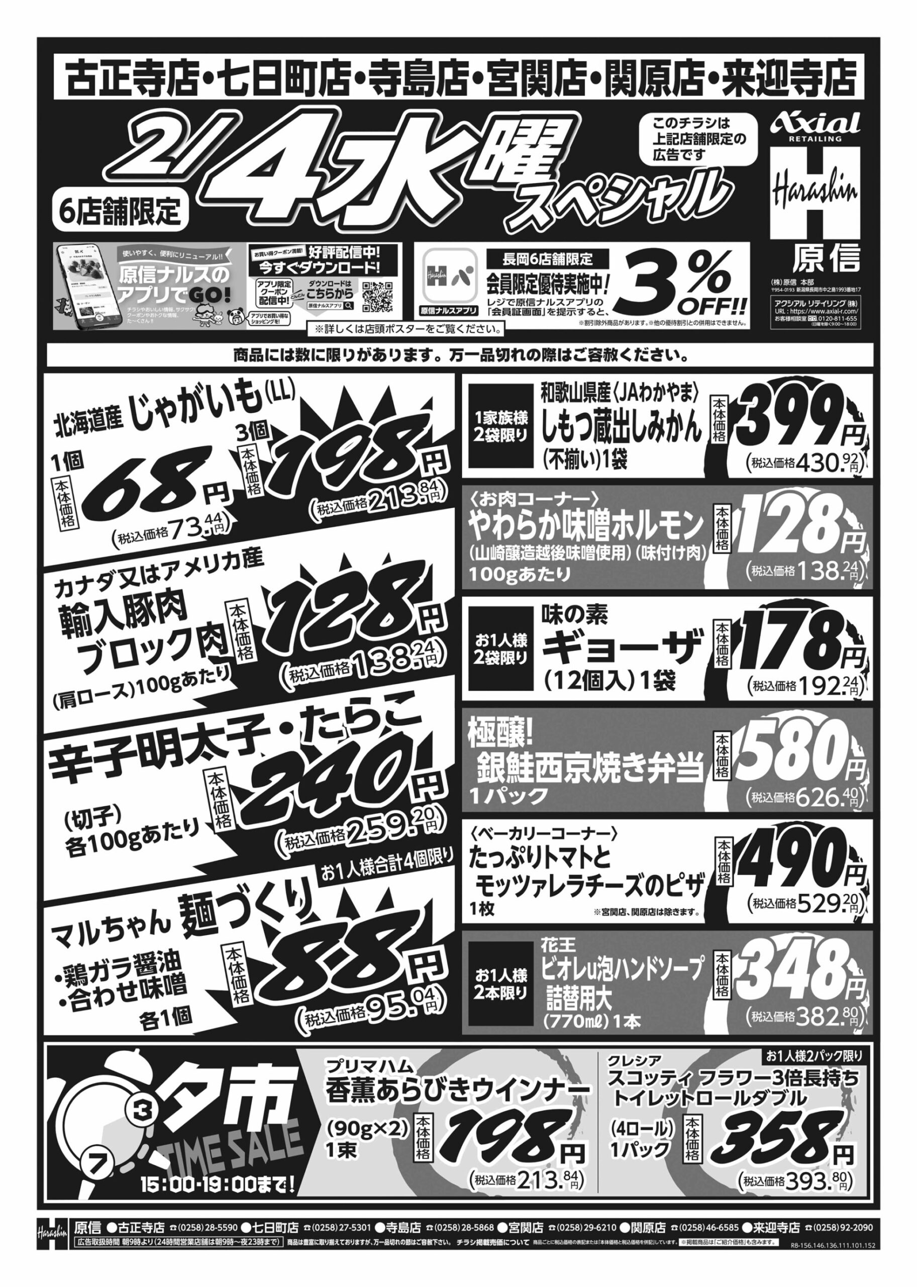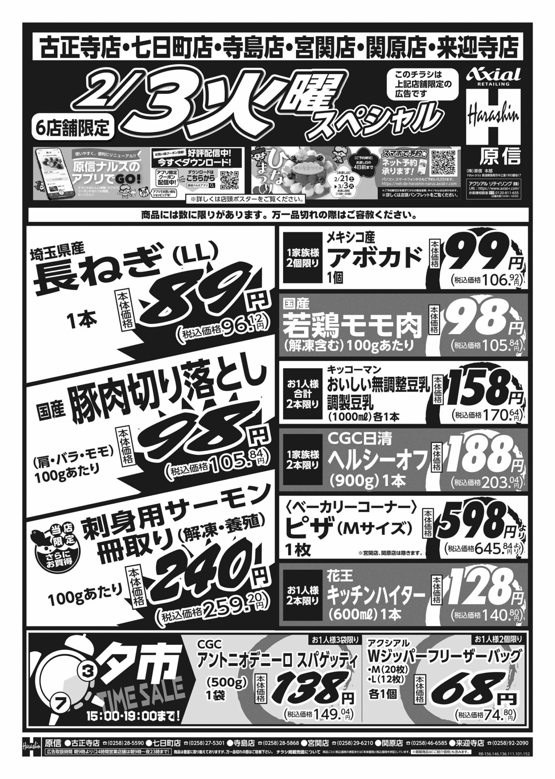 原信ナルス 【原信ナルス古正寺店・七日町店・寺島店・宮関店・関原店・来迎寺店チラシ】火曜スペシャル / 水曜スペシャル 掲載期間:2026年2月3日〜2026年2月4日 中越 スーパー原信ナルス 画像をクリックして拡大 prev next 対象:古正寺店・七日町店・寺島店・宮関店・関原店・来迎寺店 セール・新店情報を見逃さない! ガタチラをホーム画面に追加して、 最新情報をすぐチェック▶追加方法はかんたん♪ 関連 長ネギお鍋でたくさん使うから 嬉しいわ~♪