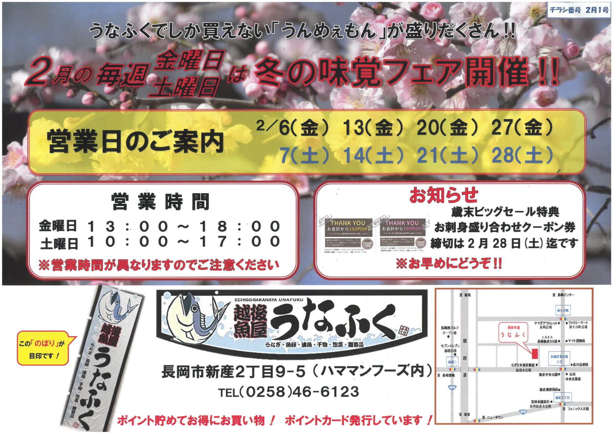 【越後魚屋うなふくチラシ】冬の味覚フェア開催‼