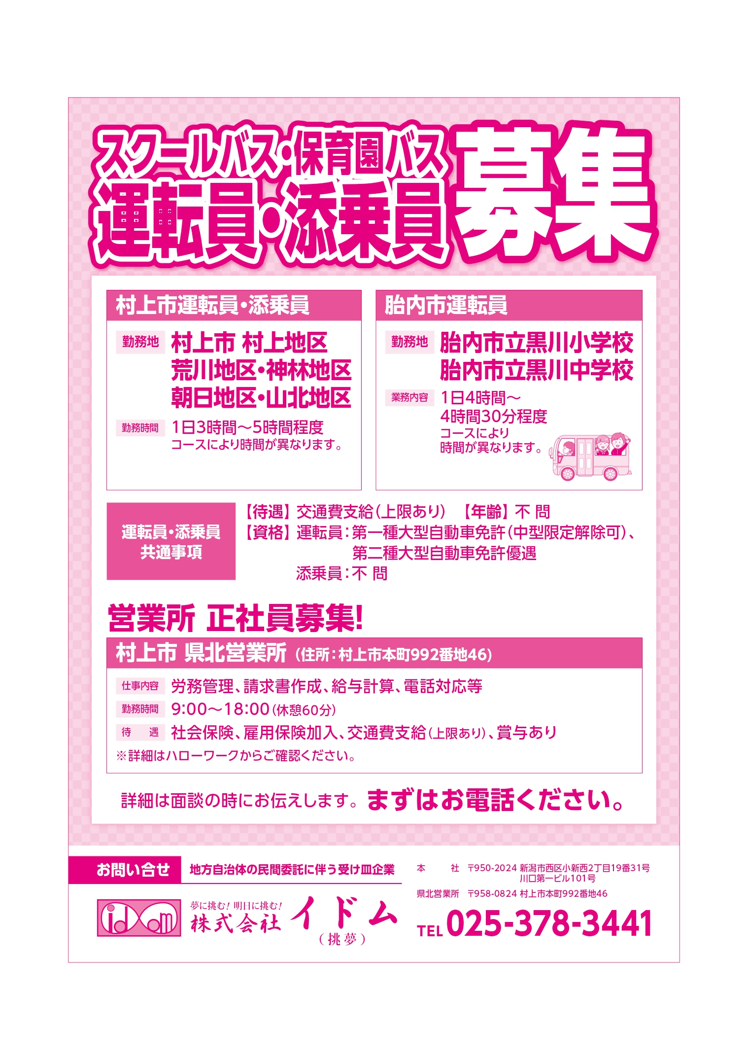 イドム 【イドムチラシ】村上市・胎内市運転員・添乗員募集 掲載期間:2026年2月14日〜2026年8月14日 下越 求人 画像をクリックして拡大 prev next セール・新店情報を見逃さない! ガタチラをホーム画面に追加して、 最新情報をすぐチェック▶追加方法はかんたん♪ 関連 営業所の正社員も募集しているわ♪