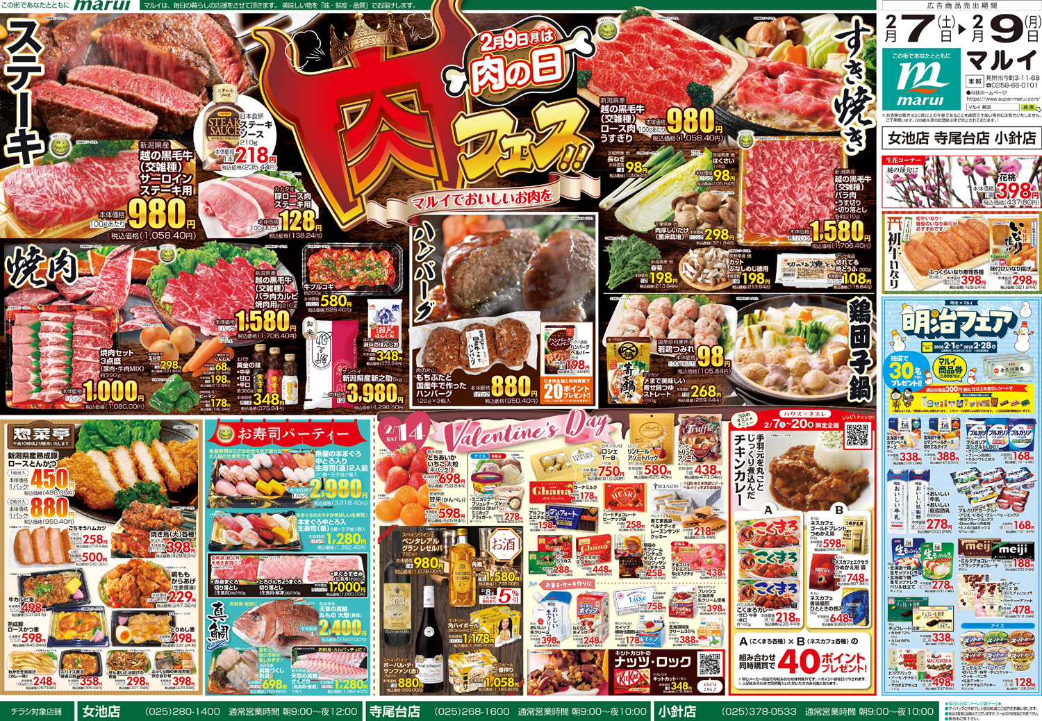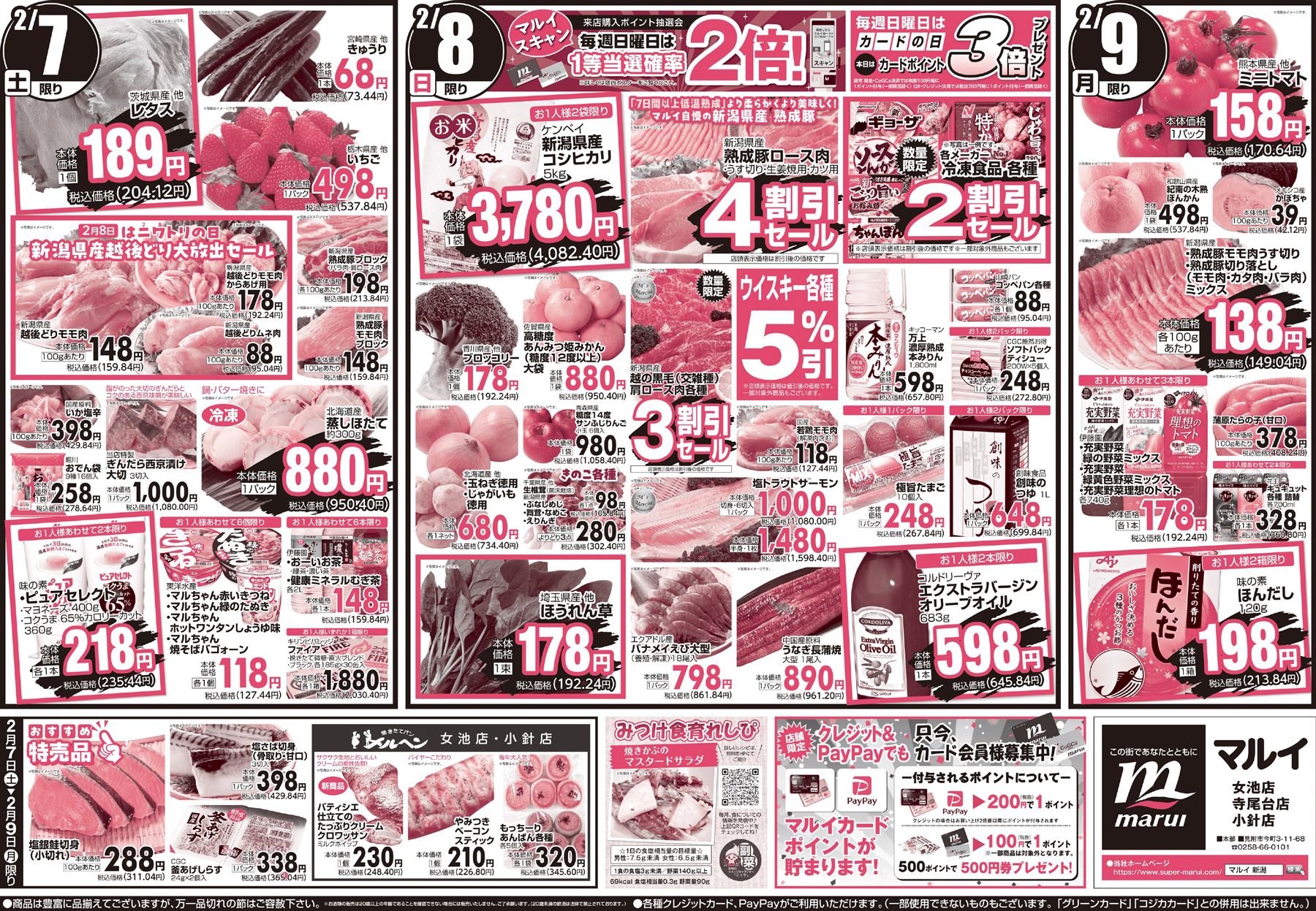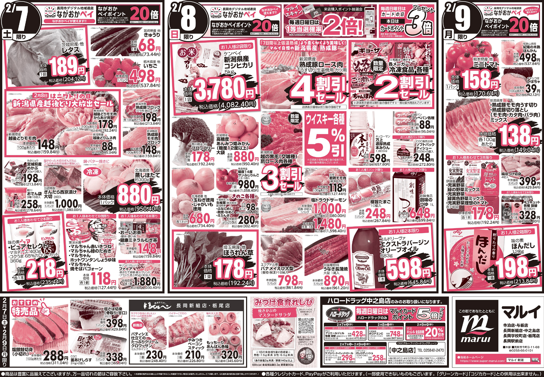 株式会社マルイ 【マルイチラシ】肉フェス‼マルイでおいしいお肉を 掲載期間:2026年2月7日〜2026年2月9日 中越新潟市下越 スーパーマルイ 目次 各店 女池店・寺尾台店・小針店 中之島店・長岡新組店・長岡学校町店・与板店・寺泊店・栃尾店・長岡駅前店 各店 画像をクリックして拡大 prev next 女池店・寺尾台店・小針店 画像をクリックして拡大 prev next 中之島店・長岡新組店・長岡学校町店・与板店・寺泊店・栃尾店・長岡駅前店 画像をクリックして拡大 prev next セール・新店情報を見逃さない! ガタチラをホーム画面に追加して、 最新情報をすぐチェック▶追加方法はかんたん♪ 関連 すき焼き食べたいわ~♪