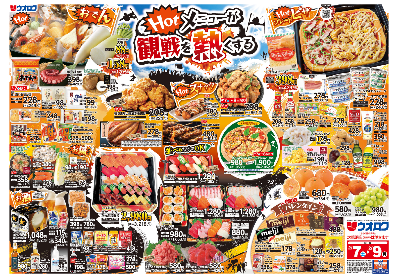 ウオロク 【ウオロクチラシ】HOTメニューが観戦を熱くする 掲載期間:2026年2月7日〜2026年2月9日 上越中越新潟市下越 スーパーウオロク 画像をクリックして拡大 prev next セール・新店情報を見逃さない! ガタチラをホーム画面に追加して、 最新情報をすぐチェック▶追加方法はかんたん♪ 関連 ピザを片手に観戦 楽しそうだな~♪