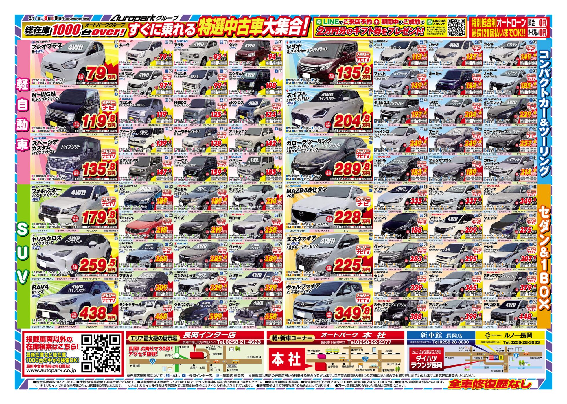 オートパーク長岡店 【オートパーク長岡店チラシ】新車が安い!33万円引!! 掲載期間:2026年2月7日〜2026年2月9日 中越 車・カー用品 画像をクリックして拡大 prev next セール・新店情報を見逃さない! ガタチラをホーム画面に追加して、 最新情報をすぐチェック▶追加方法はかんたん♪ 関連 欲しかった車もお得に買えるかも♪