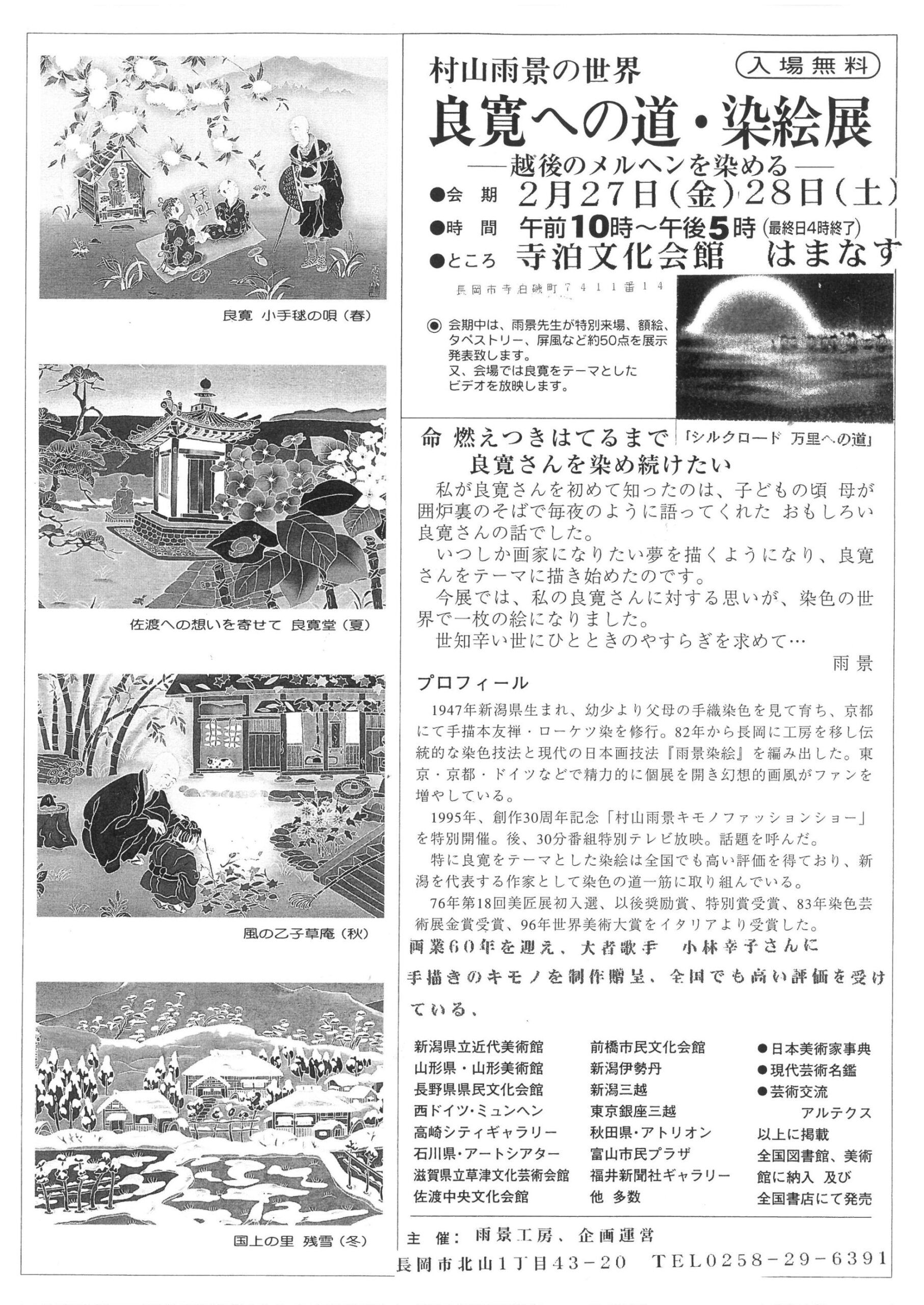 【村山雨景チラシ】良寛への道・染絵展 寺泊文化会館はまなす
