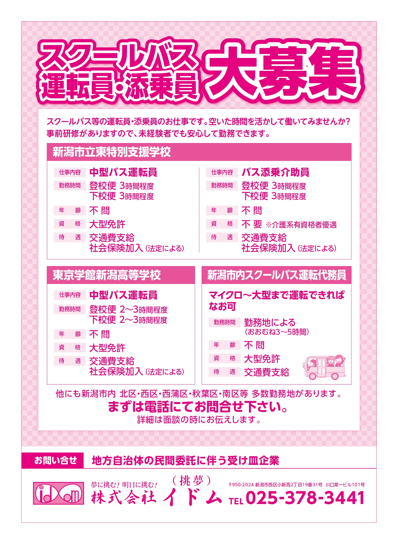 【イドムチラシ】スクールバス運転員・添乗員募集