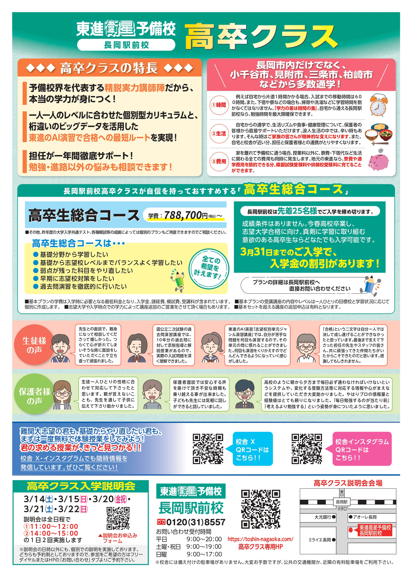 東進衛星予備校長岡駅前校 【東進衛星予備校長岡駅前校チラシ】2026年度入学者受付中! 掲載期間:2026年2月19日〜2026年3月31日 中越 塾・スイミング 画像をクリックして拡大 prev next セール・新店情報を見逃さない! ガタチラをホーム画面に追加して、 最新情報をすぐチェック▶追加方法はかんたん♪ 関連 実績のある予備校で僕も頑張りたいな!
