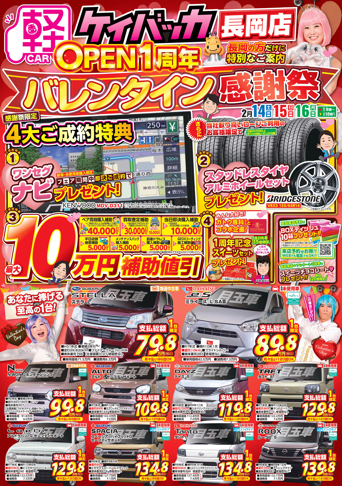 川内自動車 【ケイバッカ長岡店チラシ】バレンタイン感謝祭 掲載期間:2026年2月14日〜2026年2月16日 中越 車・カー用品 画像をクリックして拡大 prev next セール・新店情報を見逃さない! ガタチラをホーム画面に追加して、 最新情報をすぐチェック▶追加方法はかんたん♪ 関連 スイーツのプレゼントがあるんですって♡