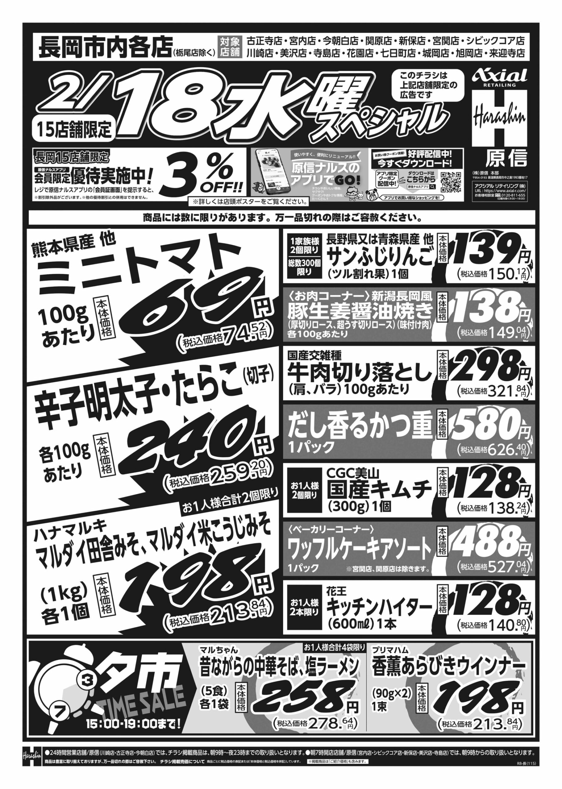原信ナルス 【原信ナルス長岡市内店チラシ】火曜スペシャル/水曜スペシャル 掲載期間:2026年2月17日〜2026年2月18日 中越 スーパー原信ナルス 画像をクリックして拡大 prev next 対象:古正寺店・宮内店・今朝白店・関原店・新保店・宮関店・シビックコア店・川崎店・美沢店・寺島店・花園店・七日町店・城岡店・旭岡店・来迎寺店 セール・新店情報を見逃さない! ガタチラをホーム画面に追加して、 最新情報をすぐチェック▶追加方法はかんたん♪ 関連 8種の彩り海鮮丼が580円ですって!