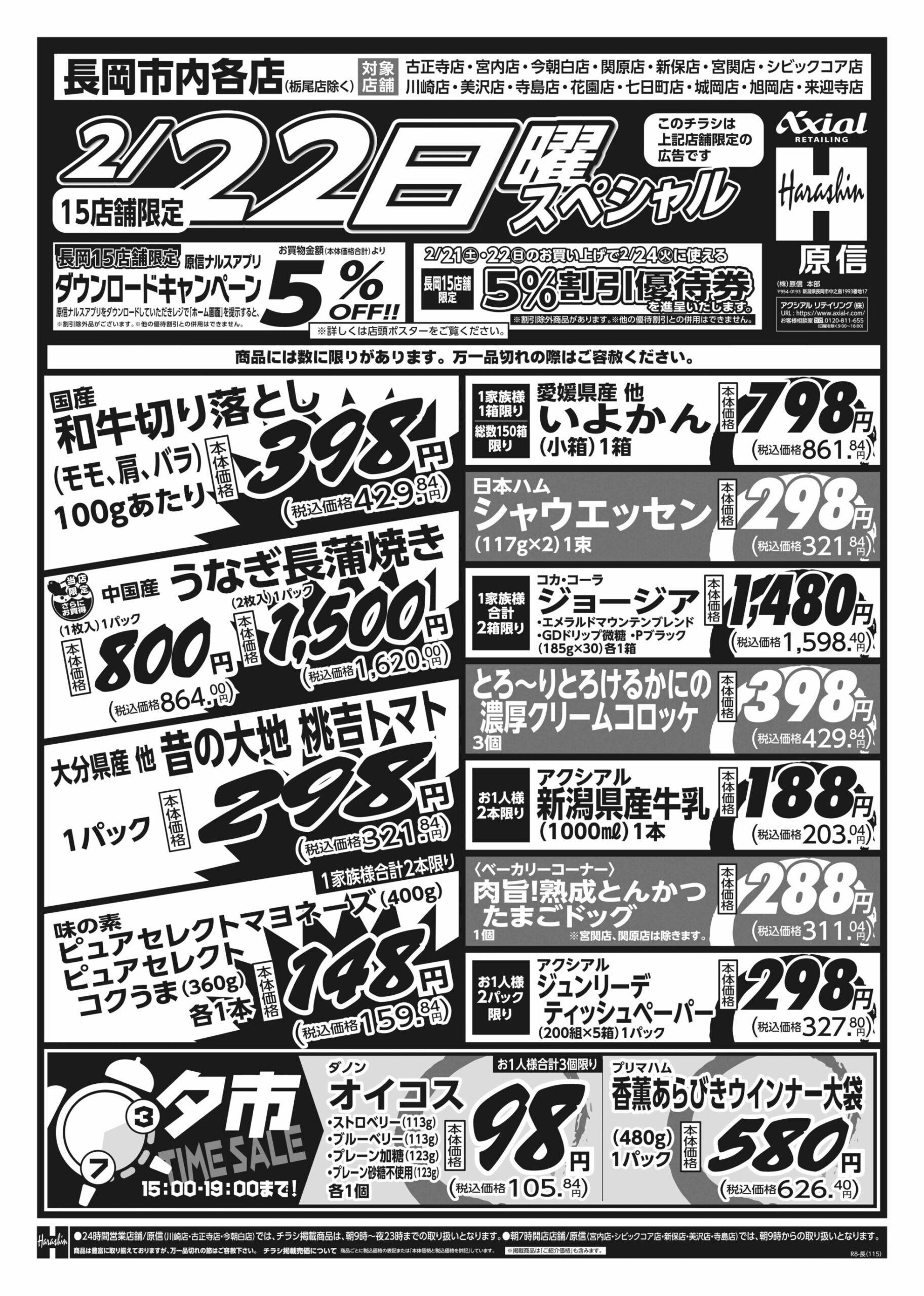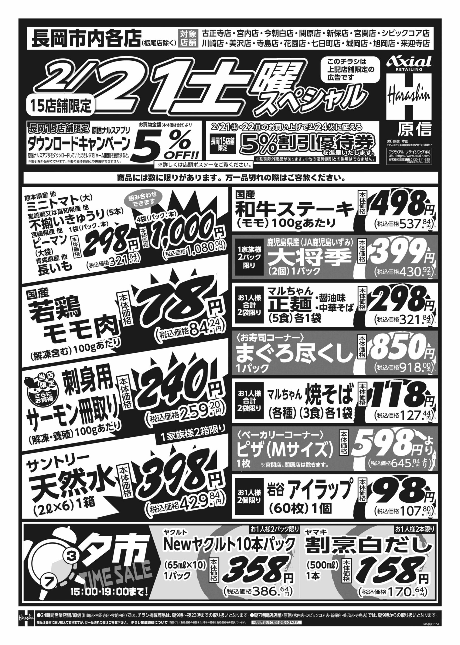 原信ナルス 【原信ナルス長岡市内店チラシ】土曜スペシャル/日曜スペシャル 掲載期間:2026年2月21日〜2026年2月22日 中越 スーパー原信ナルス 画像をクリックして拡大 prev next 対象:古正寺店・宮内店・今朝白店・関原店・新保店・宮関店・シビックコア店・川崎店・美沢店・寺島店・花園店・七日町店・城岡店・旭岡店・来迎寺店 セール・新店情報を見逃さない! ガタチラをホーム画面に追加して、 最新情報をすぐチェック▶追加方法はかんたん♪ 関連 ヤクルト買いに行きたいわ♪