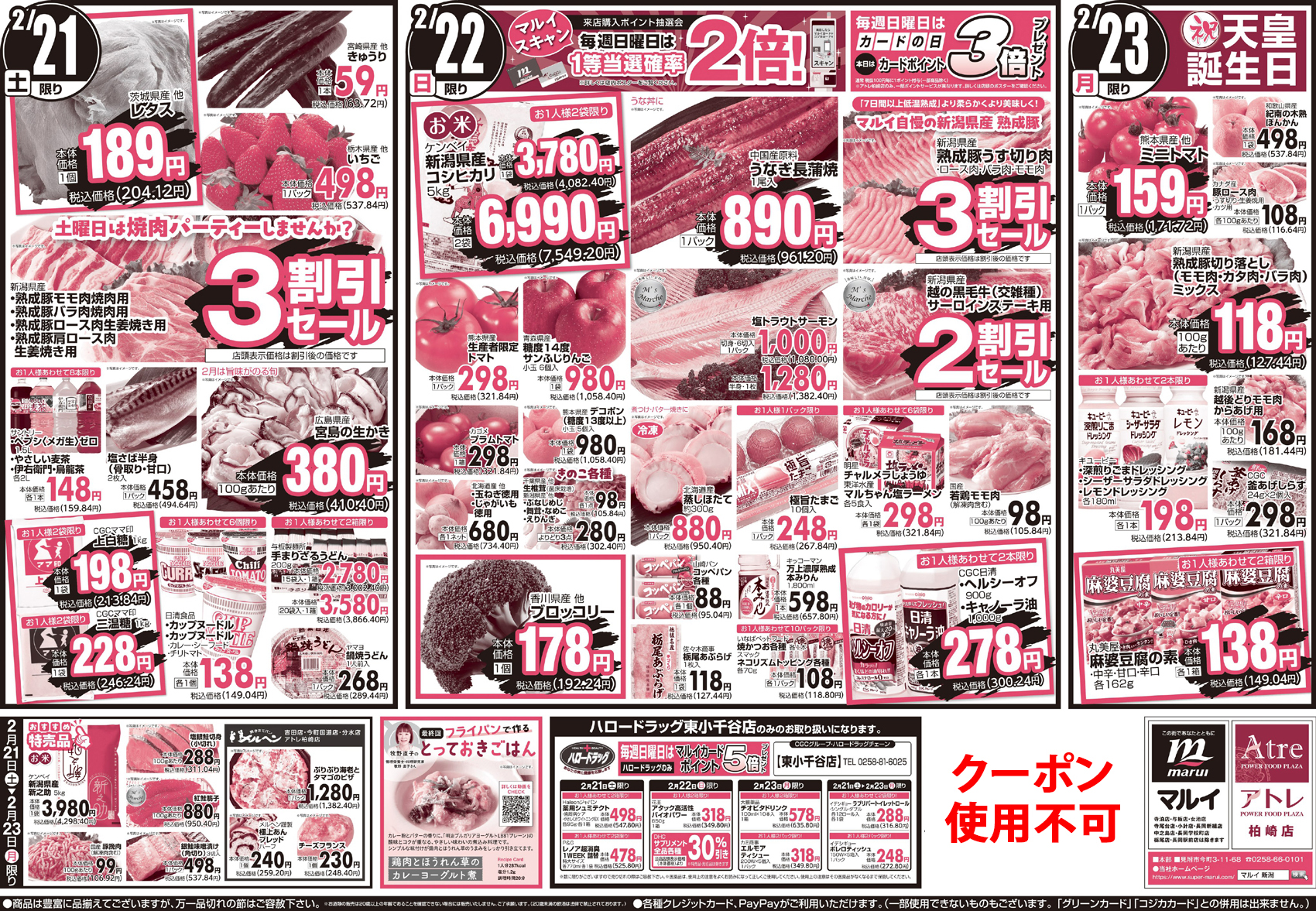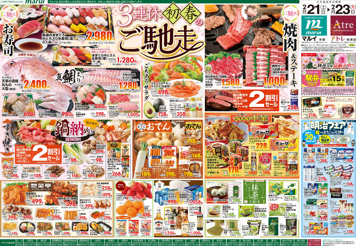 株式会社マルイ 【アトレ柏崎店チラシ】3連休初春のご馳走 掲載期間:2026年2月21日〜2026年2月23日 中越 スーパーマルイ 画像をクリックして拡大 prev next セール・新店情報を見逃さない! ガタチラをホーム画面に追加して、 最新情報をすぐチェック▶追加方法はかんたん♪ 関連 みんなで焼肉食べたいな~♪