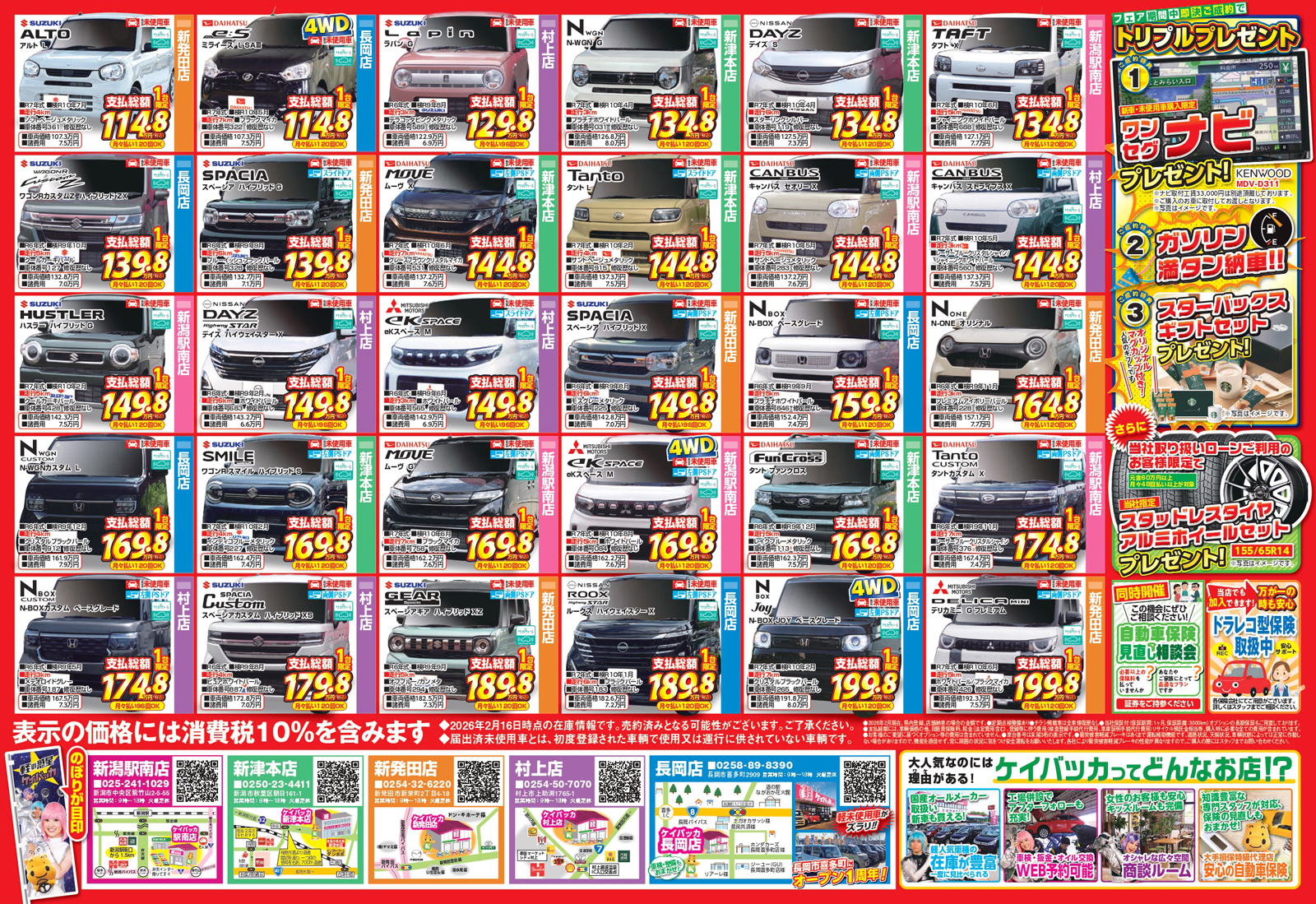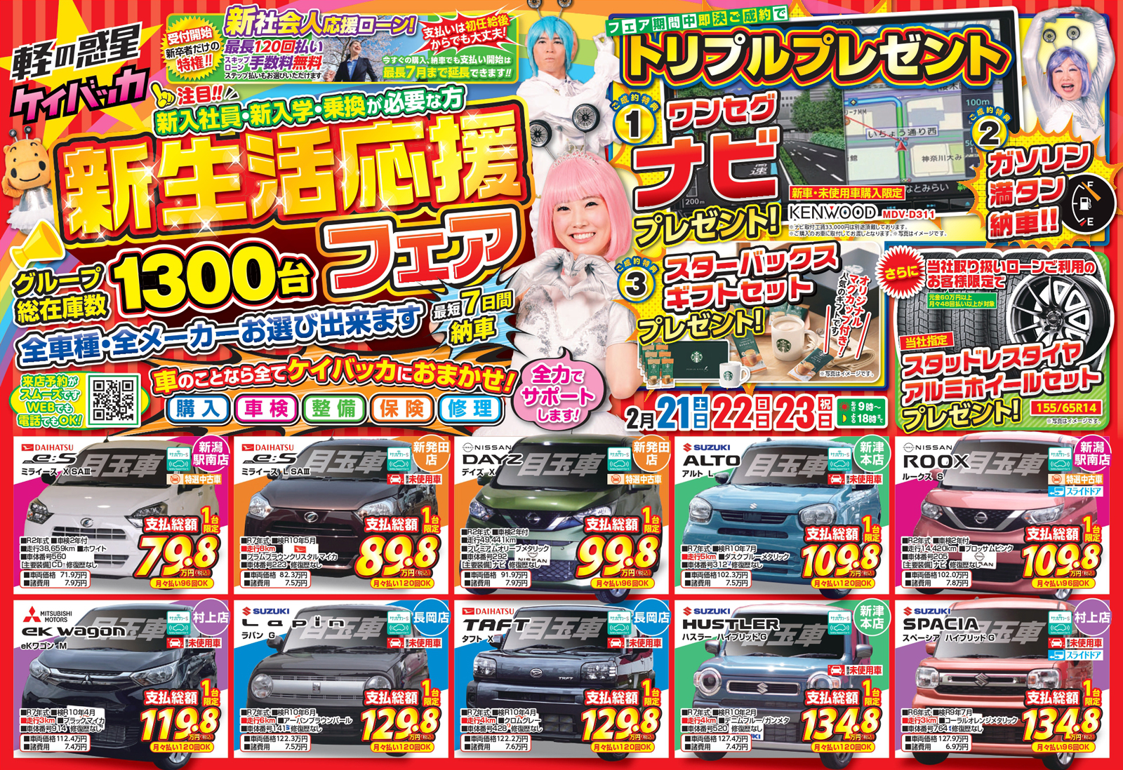 川内自動車 【ケイバッカチラシ】新生活応援フェア 掲載期間:2026年2月21日〜2026年2月23日 中越新潟市下越 車・カー用品 画像をクリックして拡大 prev next セール・新店情報を見逃さない! ガタチラをホーム画面に追加して、 最新情報をすぐチェック▶追加方法はかんたん♪ 関連 嬉しい特典がいっぱいね♪