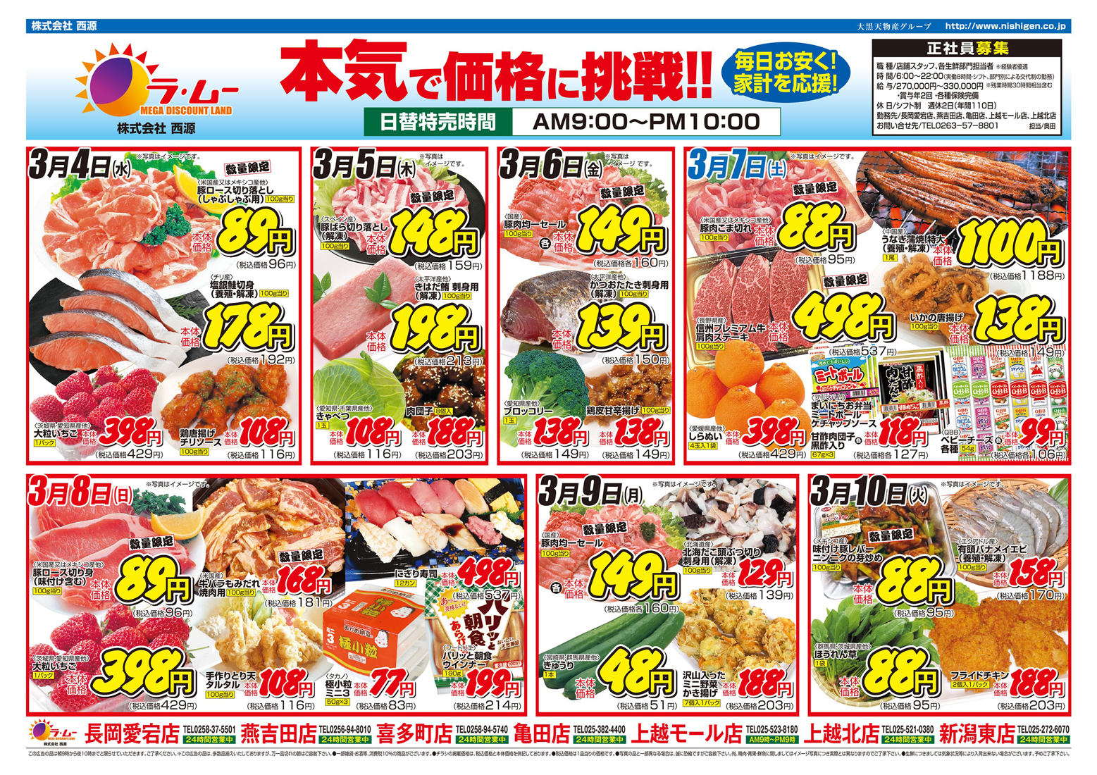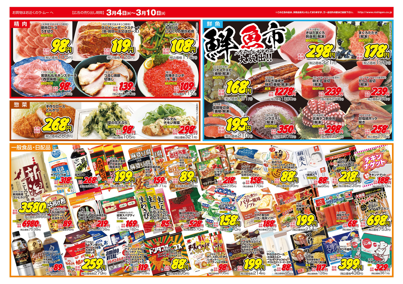 西源 【ラ・ムーチラシ】本気で価格に挑戦!! 掲載期間:2026年3月4日〜2026年3月10日 上越中越新潟市下越 スーパーラ・ムー 画像をクリックして拡大 prev next セール・新店情報を見逃さない! ガタチラをホーム画面に追加して、 最新情報をすぐチェック▶追加方法はかんたん♪ 関連 バイヤーが選んだ美味しいものをぜひいただいてみたいわ♪