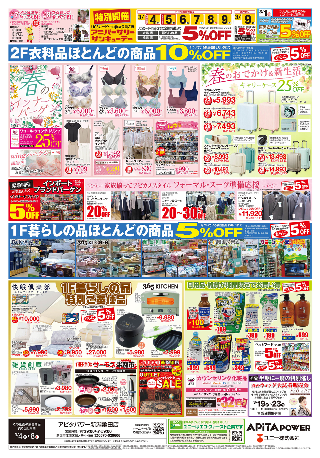 アピタパワー新潟亀田店 【アピタパワー新潟亀田店チラシ】アピタン誕生祭 掲載期間:2026年3月1日〜2026年3月8日 新潟市 スーパーアピタ 画像をクリックして拡大 prev next セール・新店情報を見逃さない! ガタチラをホーム画面に追加して、 最新情報をすぐチェック▶追加方法はかんたん♪ 関連 ひなまつりはおいしいスイーツをたくさん食べたいね!