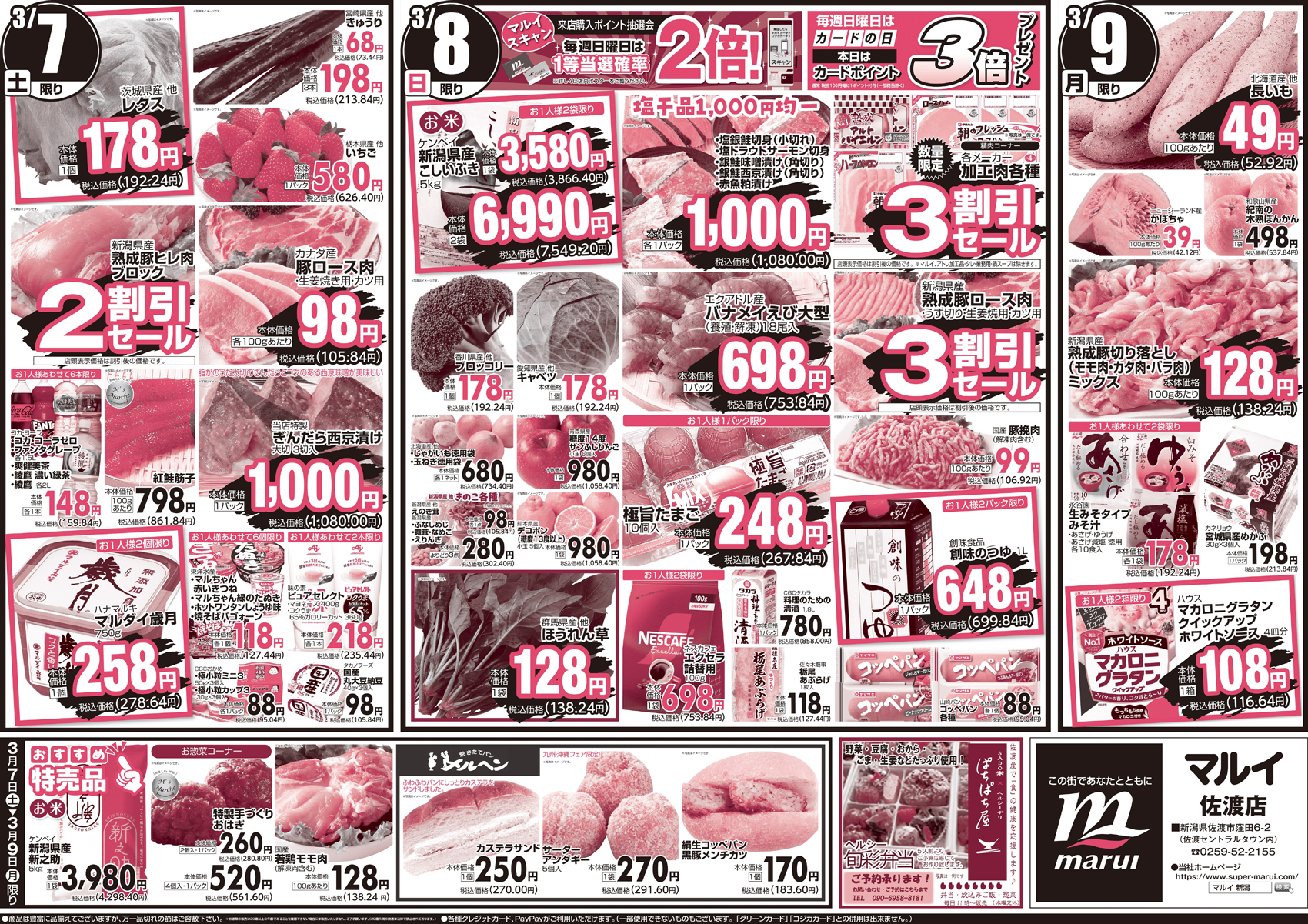 株式会社マルイ 【マルイ佐渡店チラシ】九州&沖縄フェア 掲載期間:2026年3月6日〜2026年3月9日 佐渡 スーパーマルイ 画像をクリックして拡大 prev next セール・新店情報を見逃さない! ガタチラをホーム画面に追加して、 最新情報をすぐチェック▶追加方法はかんたん♪ 関連 「生さば刺身」食べたいな~♪