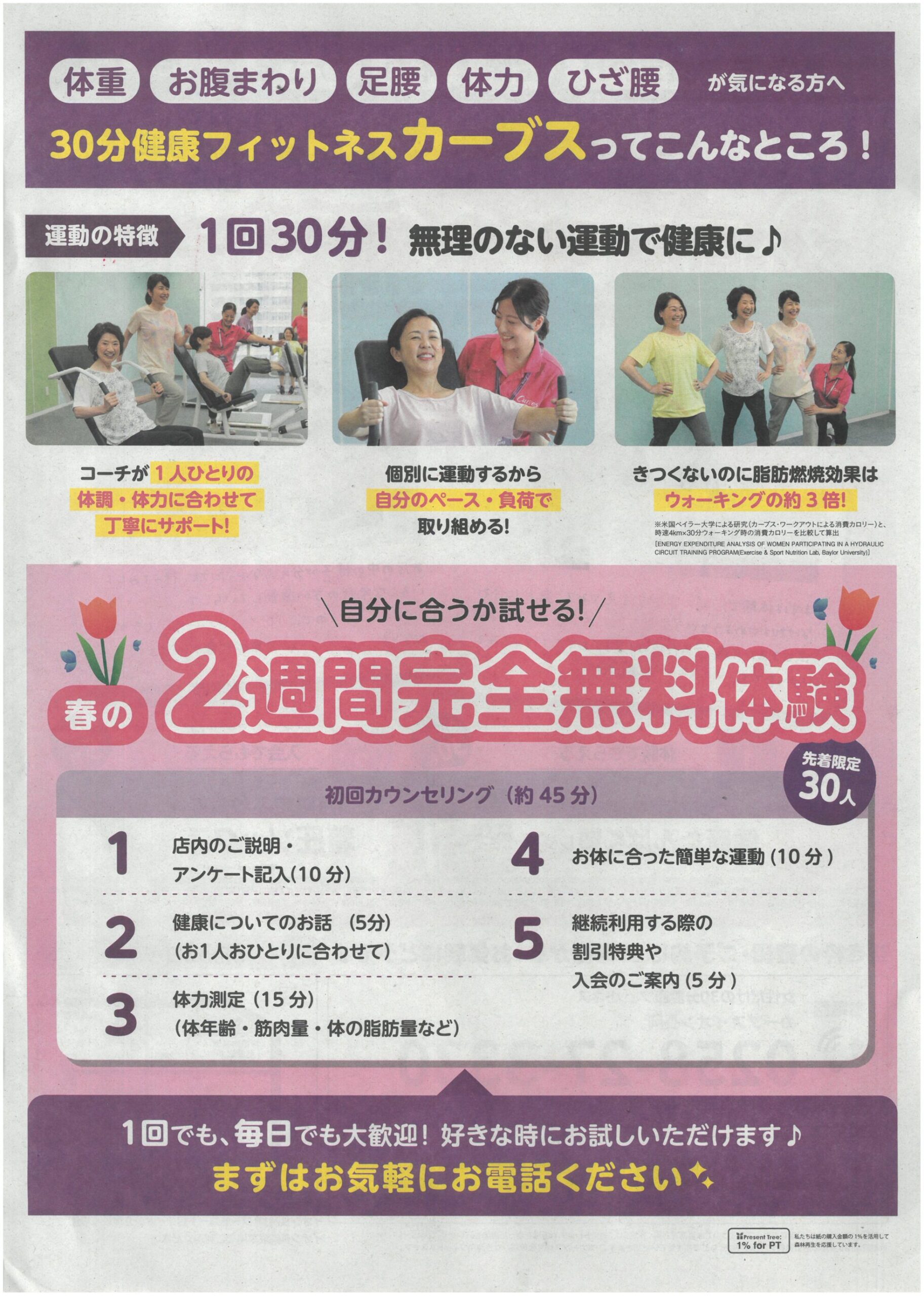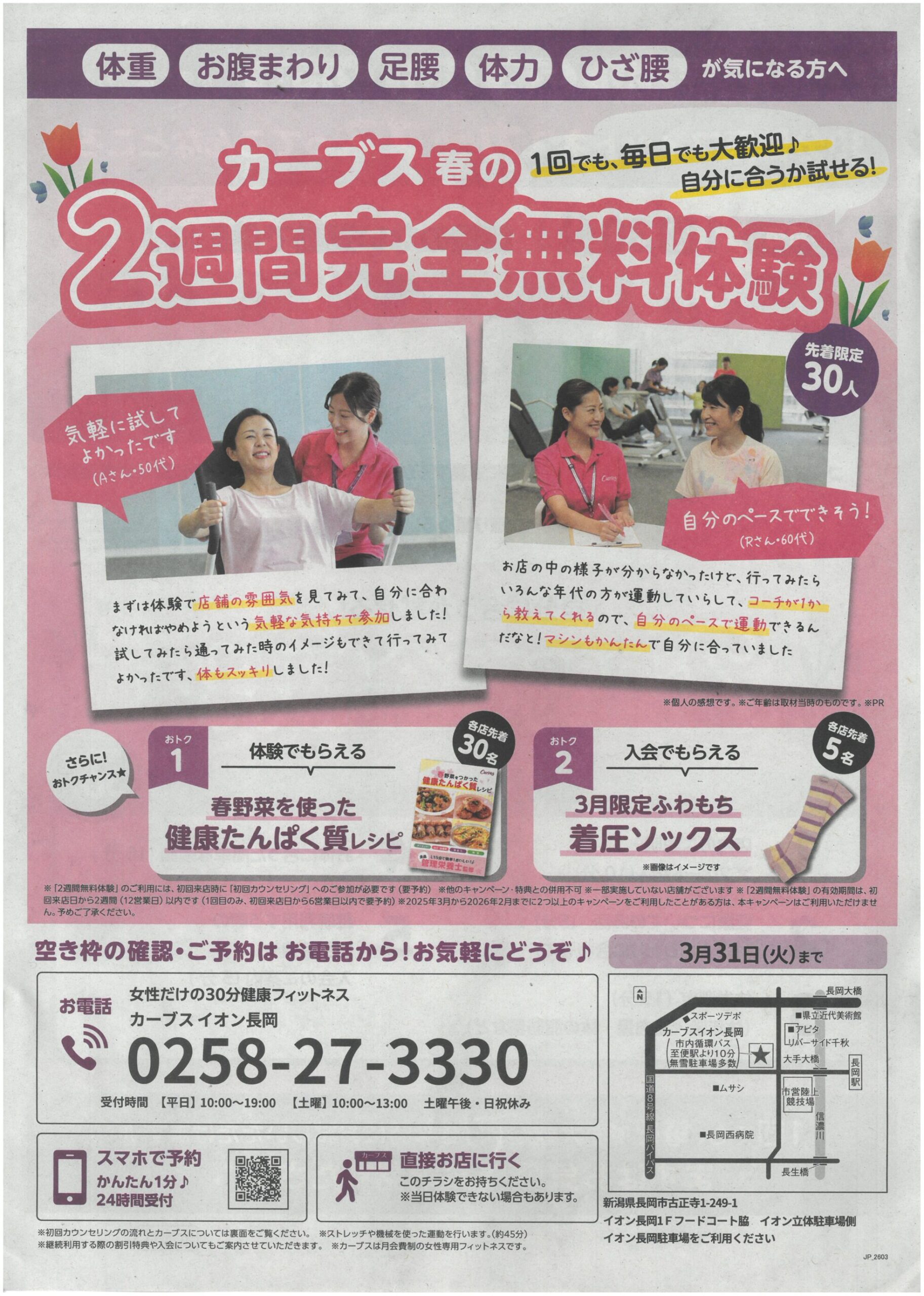 【カーブスイオン長岡チラシ】2週間完全無料体験
