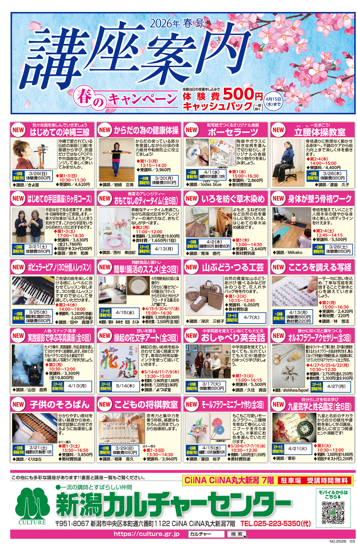 【新潟カルチャーセンターチラシ】春のキャンペーン
