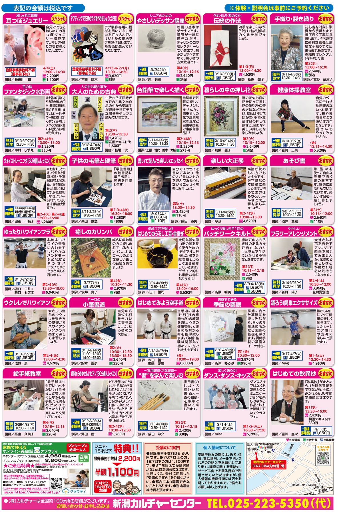 TOP > チラシ情報 > 生活サービス > 【新潟カルチャーセンターチラシ】春のキャンペーン