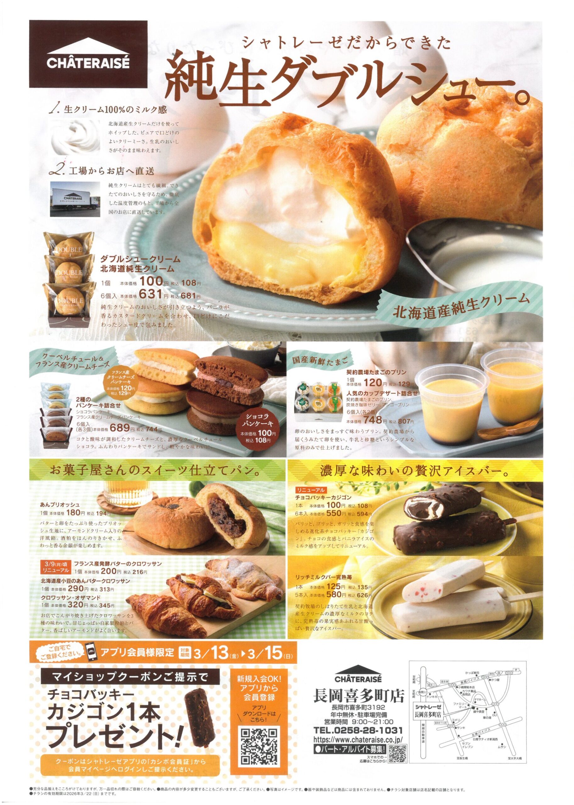 【シャトレーゼ長岡喜多町店チラシ】純正ダブルシュー。/春のスイーツ!