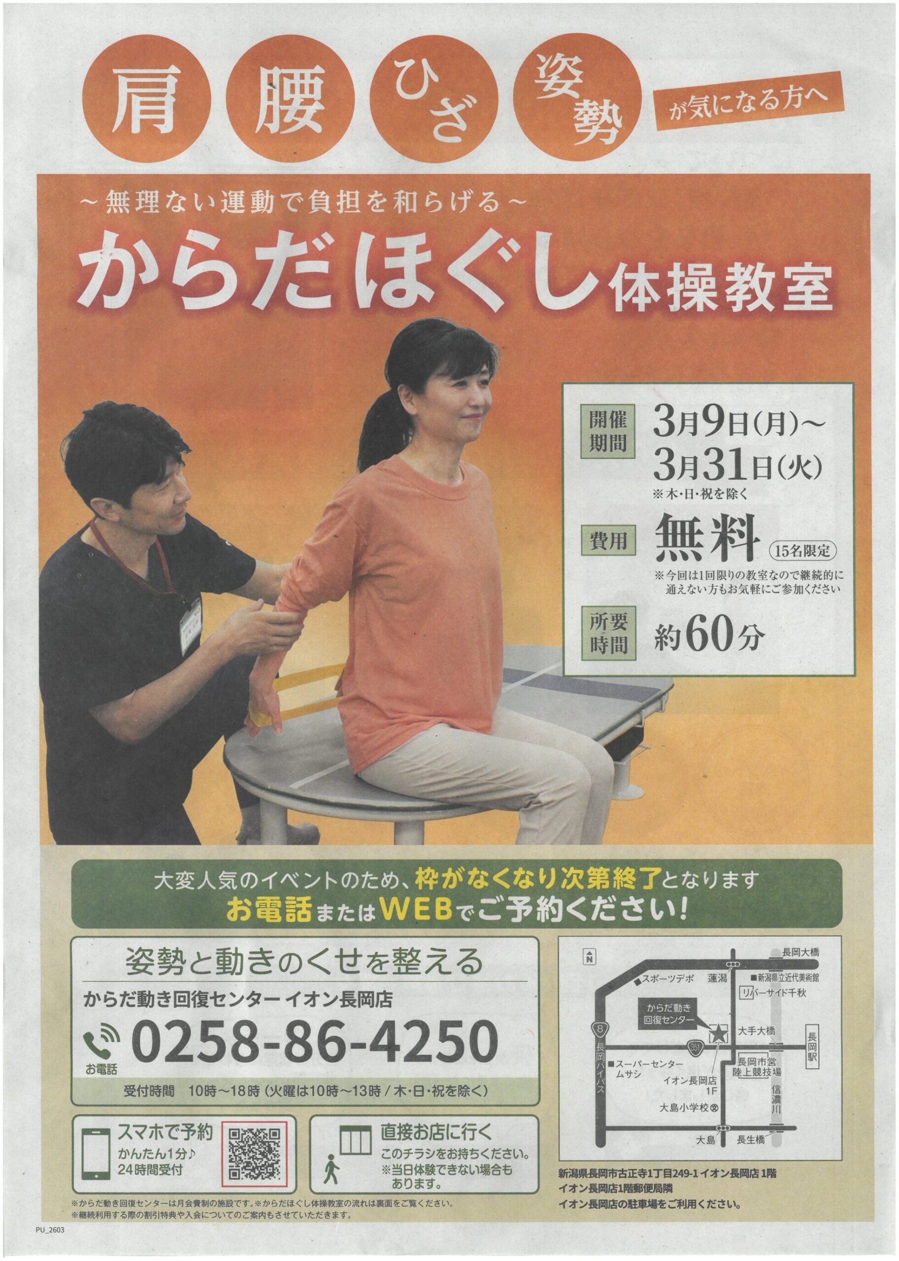 【からだ動き回復センターイオン長岡店チラシ】からだほぐし体操教室