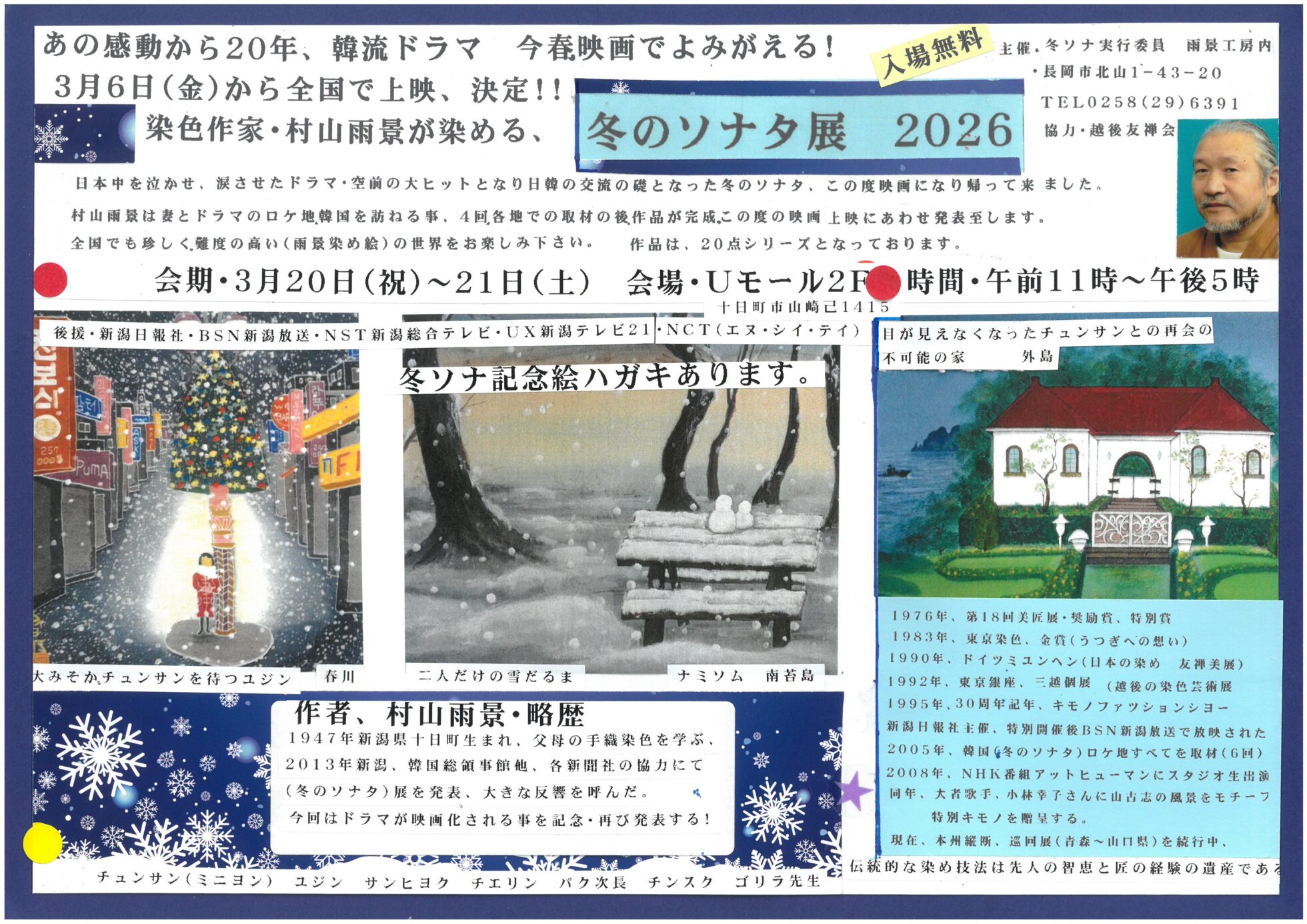 村山雨景 【村山雨景チラシ】冬のソナタ展 2026 in Uモール2F 掲載期間:2026年3月19日〜2026年3月21日 中越 イベント 画像をクリックして拡大 prev next セール・新店情報を見逃さない! ガタチラをホーム画面に追加して、 最新情報をすぐチェック▶追加方法はかんたん♪ 関連 あれからもう20年も経つのね! 懐かしいわ~
