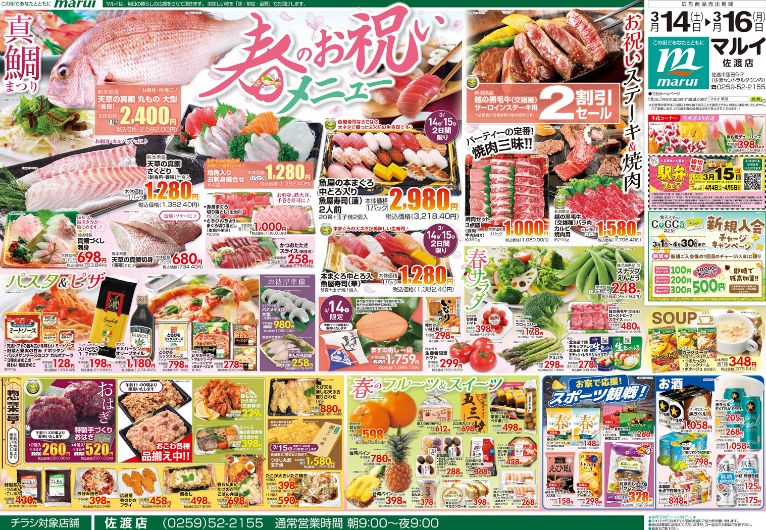 株式会社マルイ 【マルイ佐渡店チラシ】春のお祝いメニュー 掲載期間:2026年3月13日〜2026年3月16日 佐渡 スーパーマルイ 画像をクリックして拡大 prev next セール・新店情報を見逃さない! ガタチラをホーム画面に追加して、 最新情報をすぐチェック▶追加方法はかんたん♪ 関連 お祝いのごちそうに「鯛」は欠かせないわね!