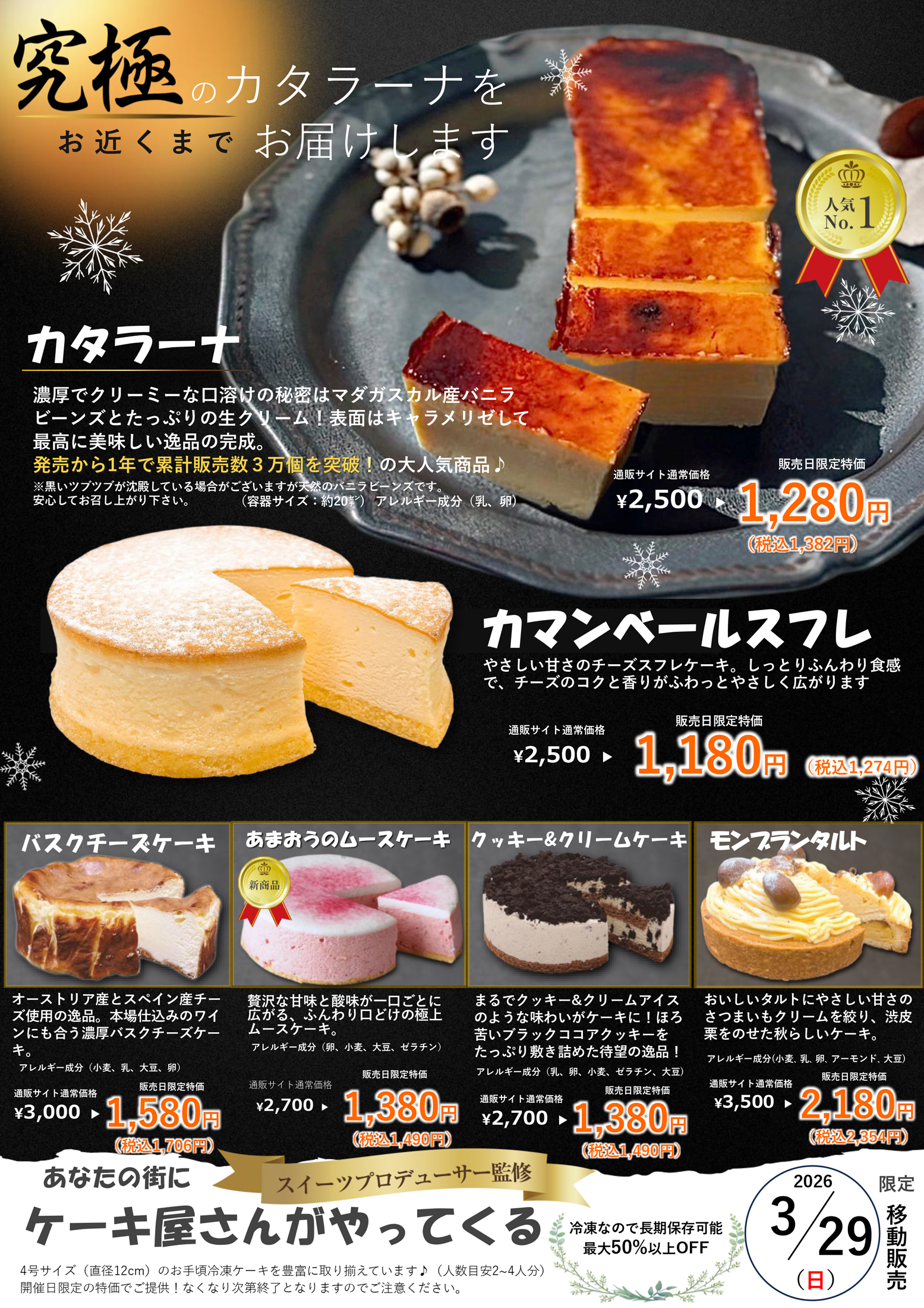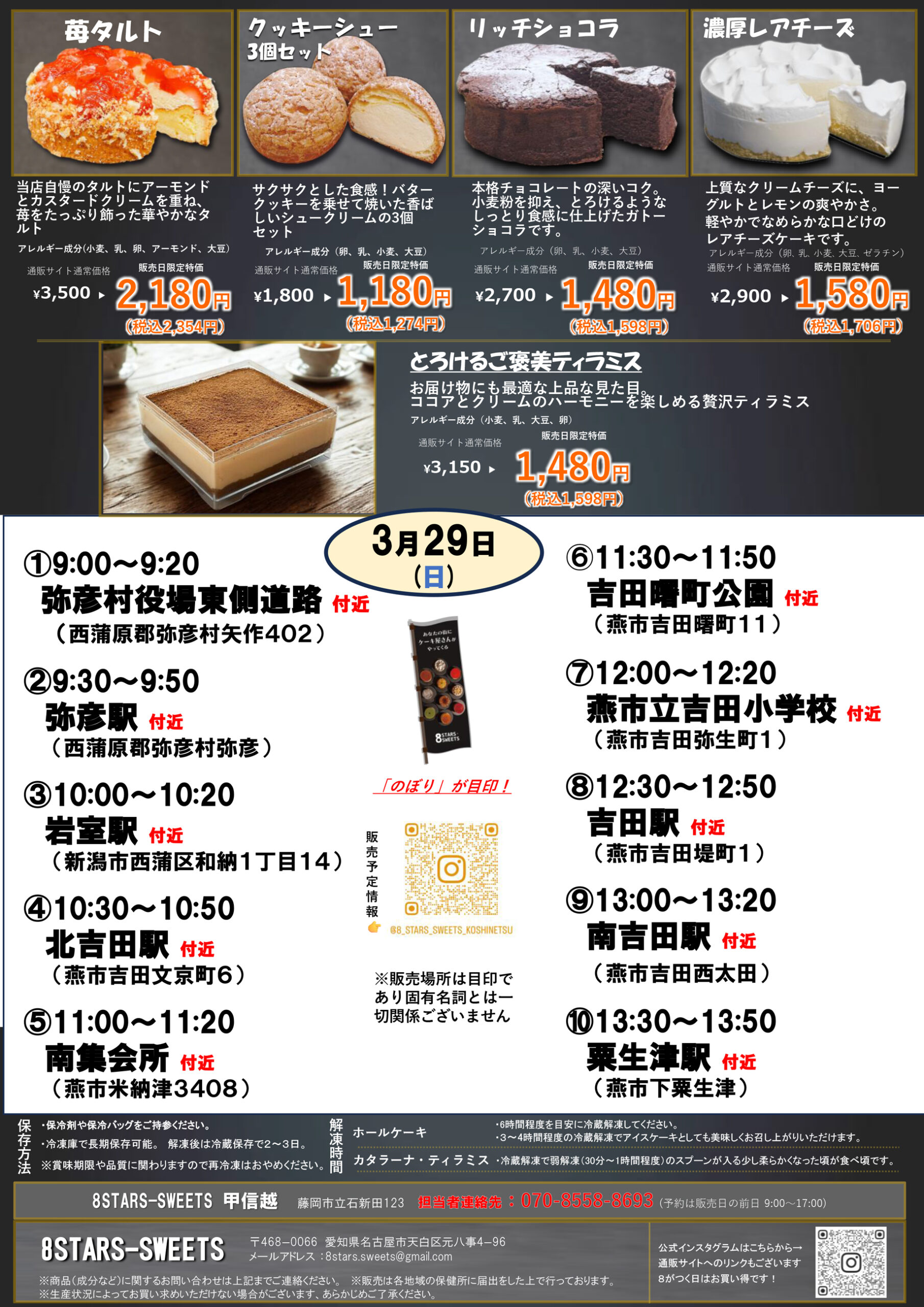 8STARS-SWEETS 【8STARS-SWEETSチラシ】あなたの街にケーキ屋さんがやってくる3月29日限定移動販売 掲載期間:2026年3月27日〜2026年3月29日 新潟市下越 グルメ 画像をクリックして拡大 prev next セール・新店情報を見逃さない! ガタチラをホーム画面に追加して、 最新情報をすぐチェック▶追加方法はかんたん♪ 関連 新商品の「あまおうのムースケーキ」が、とっても気になるわ!