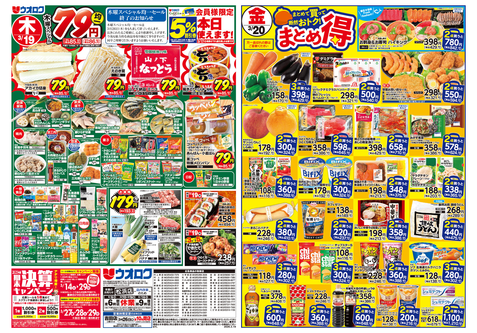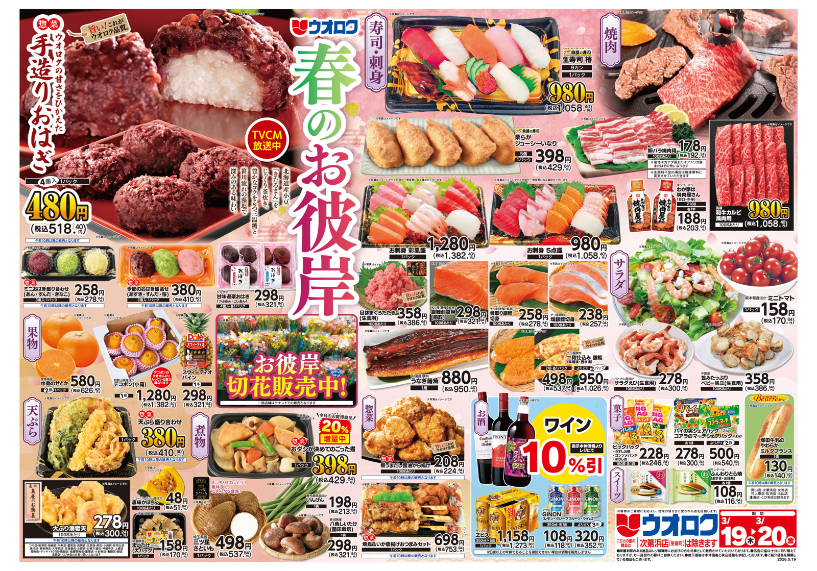 ウオロク 【ウオロクチラシ】春のお彼岸 掲載期間:2026年3月19日〜2026年3月20日 上越中越新潟市下越 スーパーウオロク 画像をクリックして拡大 prev next 対象:全店 セール・新店情報を見逃さない! ガタチラをホーム画面に追加して、 最新情報をすぐチェック▶追加方法はかんたん♪ 関連 おいしそうなおはぎだわ~♪