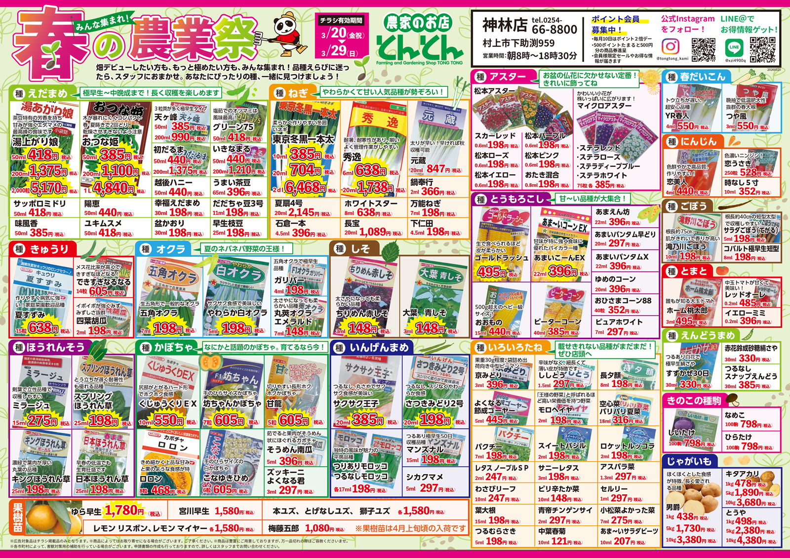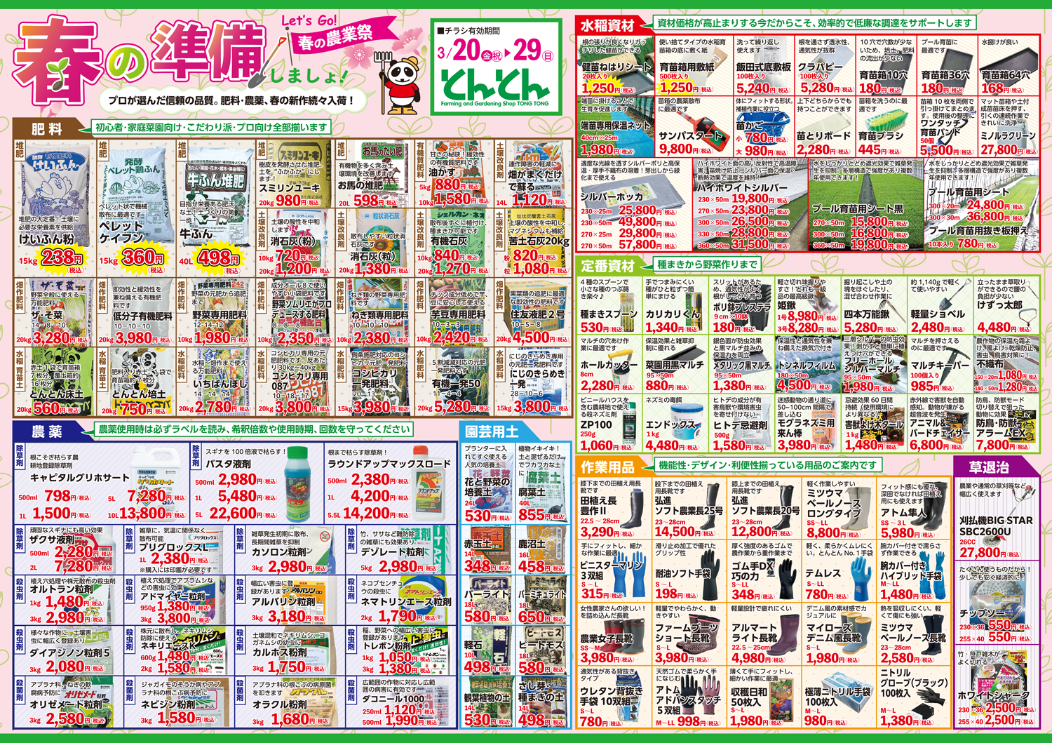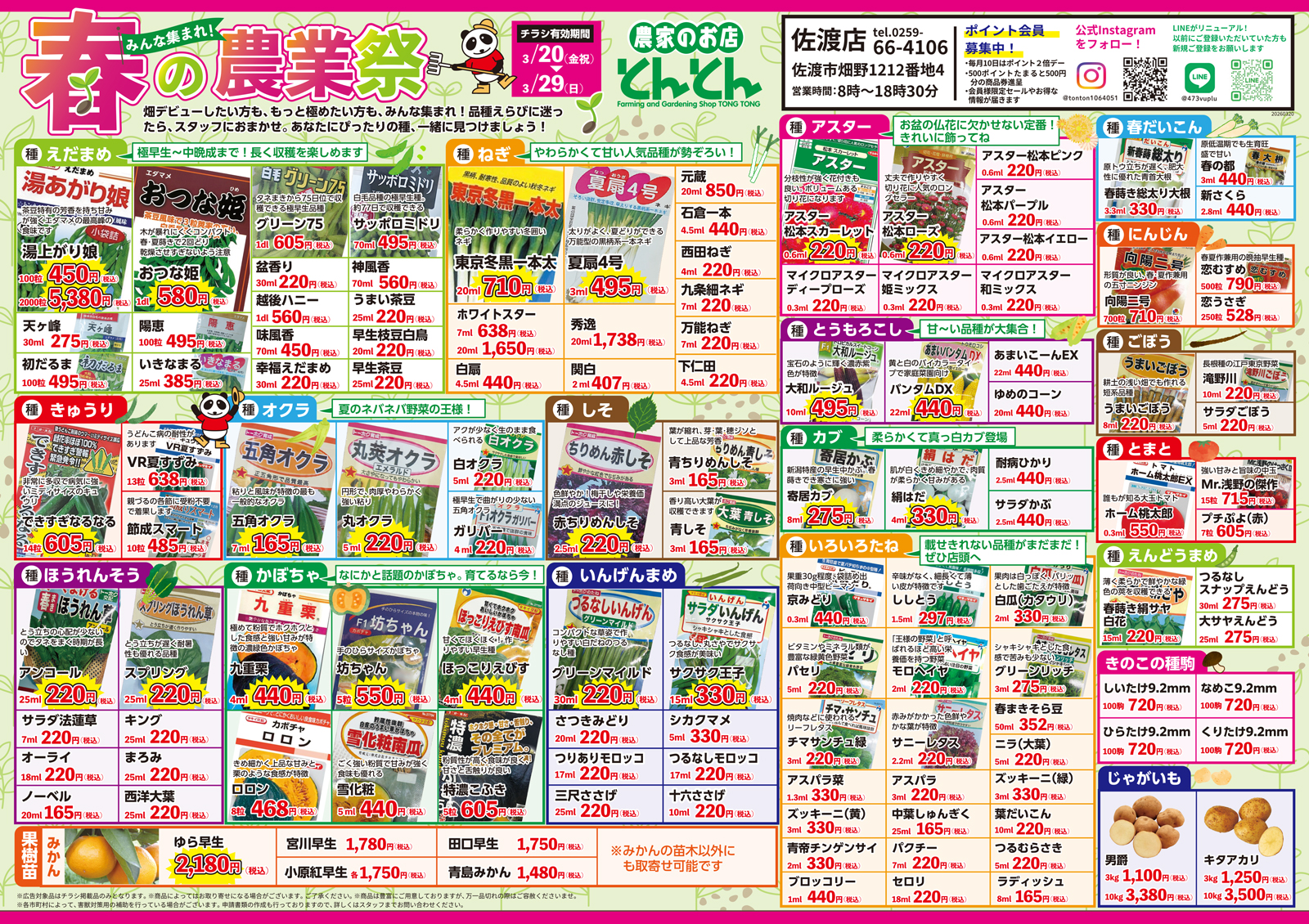 とんとん五泉店・神林店・佐渡店 【とんとん五泉店・神林店・佐渡店チラシ】春の農業祭 掲載期間:2026年3月20日〜2026年3月29日 下越佐渡 生活サービス 目次 五泉店 神林店 佐渡店 五泉店 画像をクリックして拡大 prev next 神林店 画像をクリックして拡大 prev next 佐渡店 画像をクリックして拡大 prev next セール・新店情報を見逃さない! ガタチラをホーム画面に追加して、 最新情報をすぐチェック▶追加方法はかんたん♪ 関連 畑デビューしたいならとんとんで相談ね♪