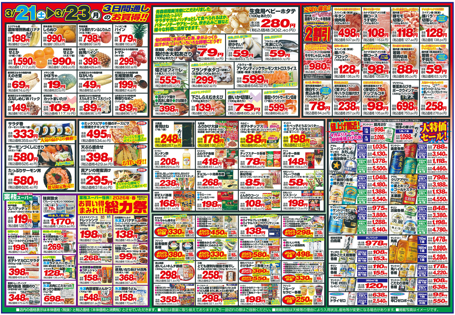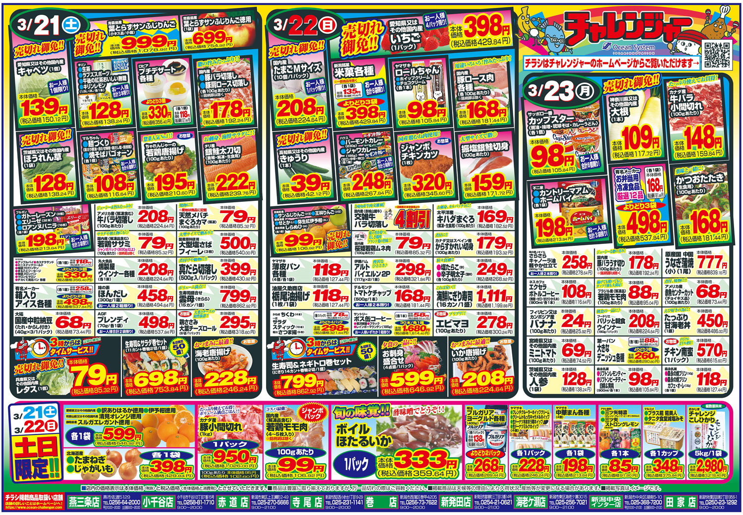 対象店舗:燕三条店、新潟中央インター店、新発田店、赤道店、寺尾店、海老ケ瀬店、小千谷店、巻店、田家店
