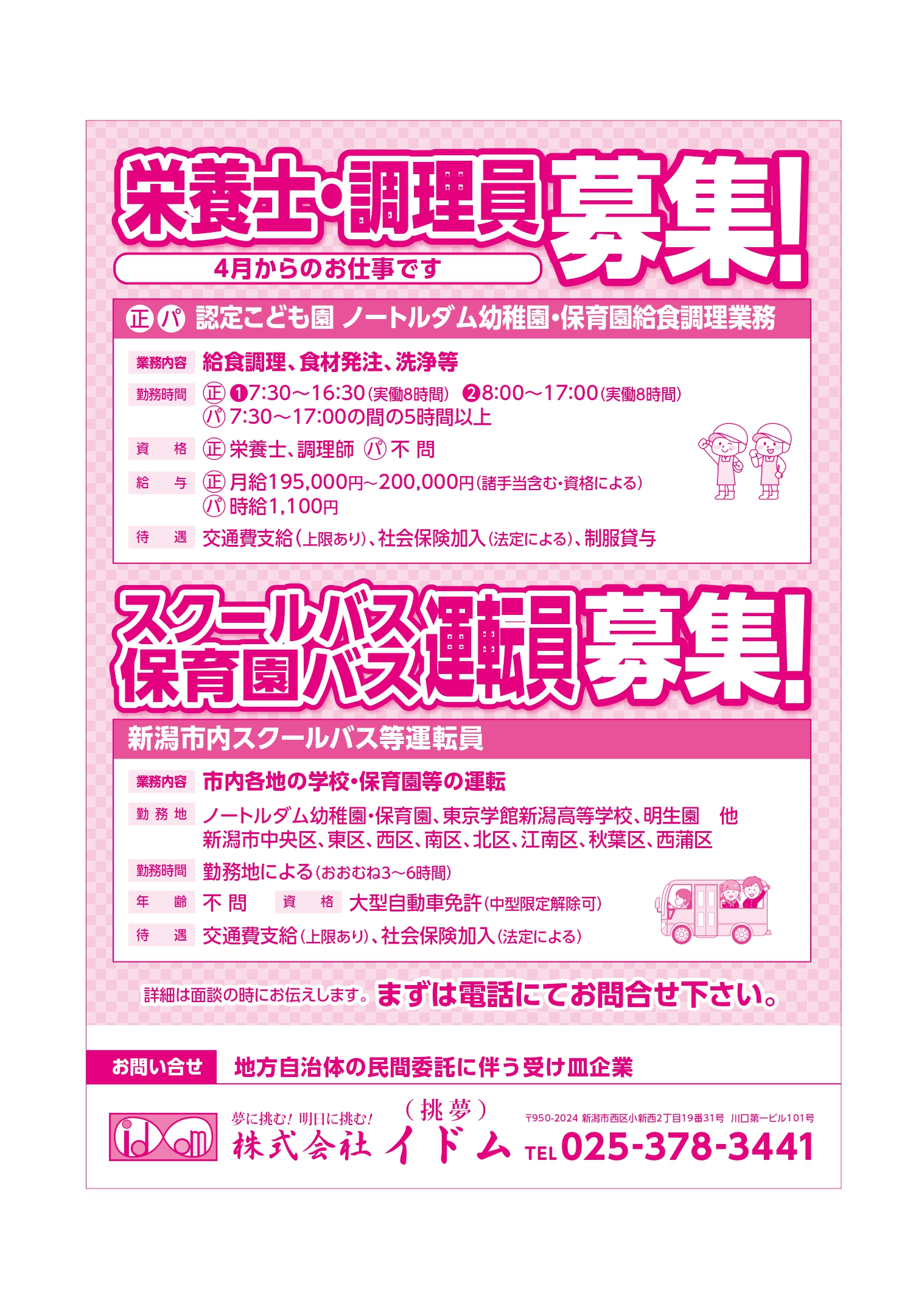 イドム 【イドムチラシ】栄養士・調理員・スクールバス運転員募集 掲載期間:2026年3月20日〜2026年9月20日 新潟市 求人 画像をクリックして拡大 prev next セール・新店情報を見逃さない! ガタチラをホーム画面に追加して、 最新情報をすぐチェック▶追加方法はかんたん♪ 関連 まずは電話してみるのよ~♪