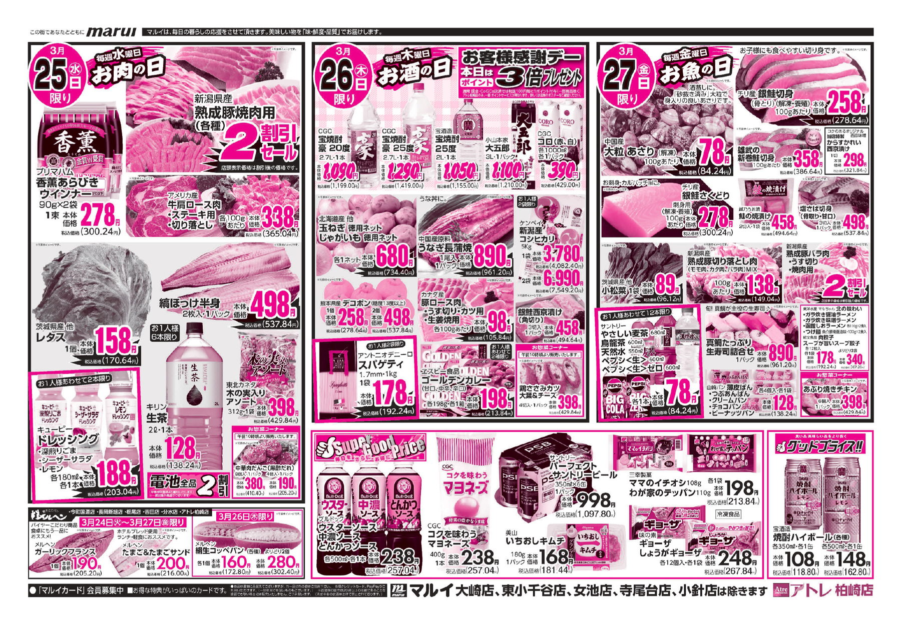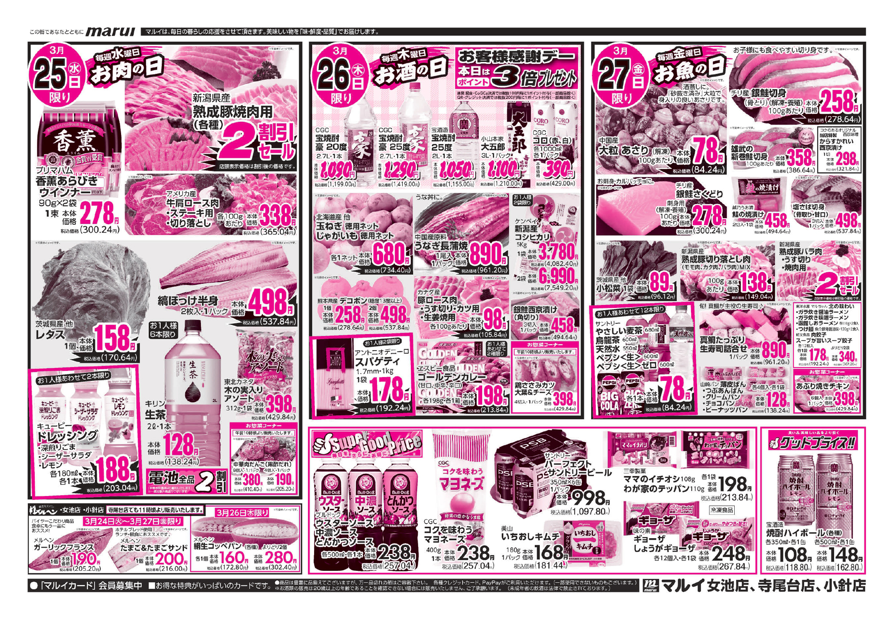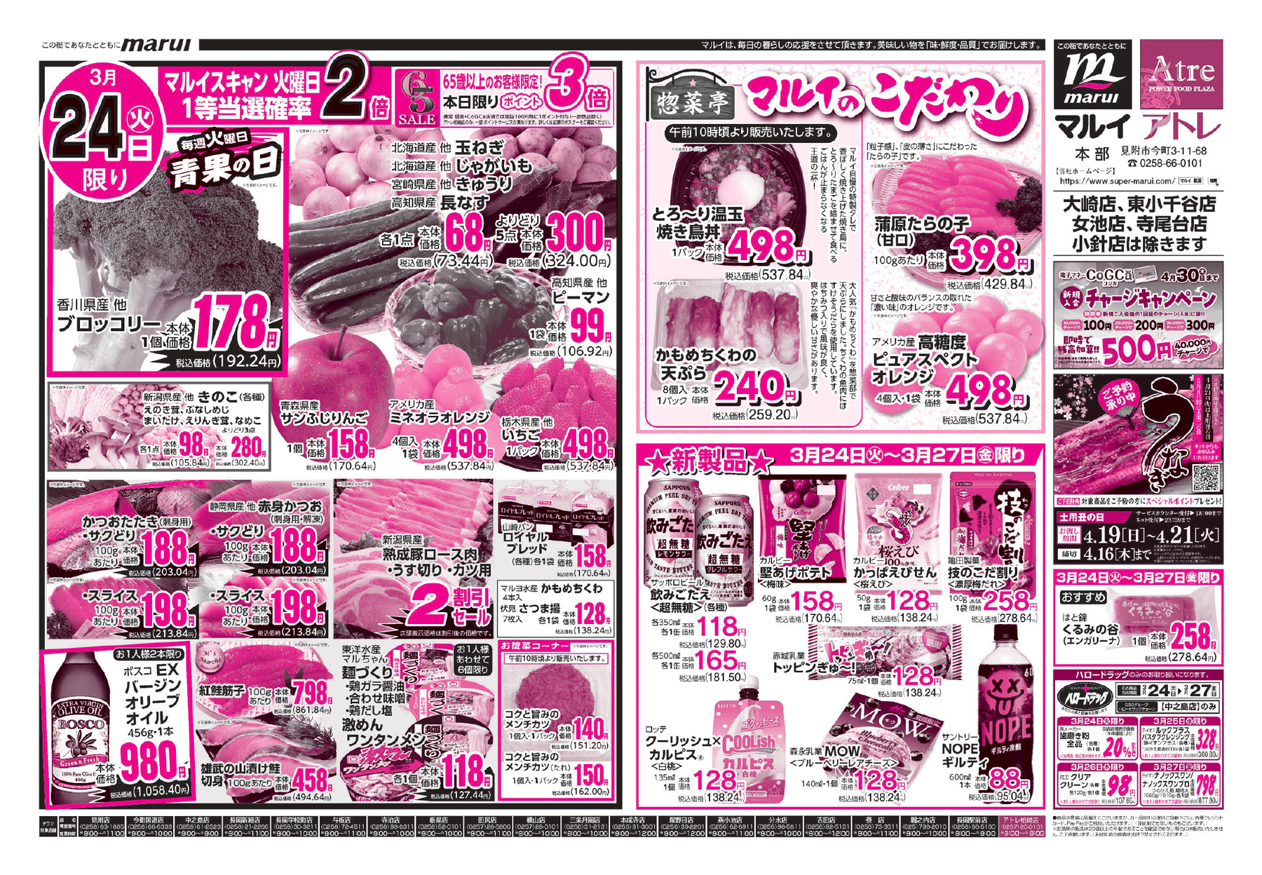 株式会社マルイ 【マルイチラシ】マルイのこだわり 掲載期間:2026年3月24日〜2026年3月27日 中越新潟市下越 スーパーマルイ 目次 各店 女池店・寺尾台店・小針店 各店 画像をクリックして拡大 prev next 女池店・寺尾台店・小針店 画像をクリックして拡大 prev next セール・新店情報を見逃さない! ガタチラをホーム画面に追加して、 最新情報をすぐチェック▶追加方法はかんたん♪ 関連 新製品が気になるわ~♪