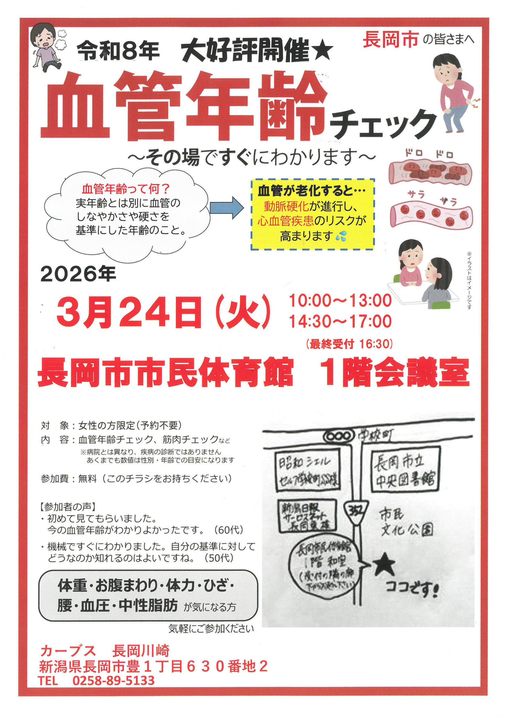【カーブス長岡川崎チラシ】血管年齢チェック