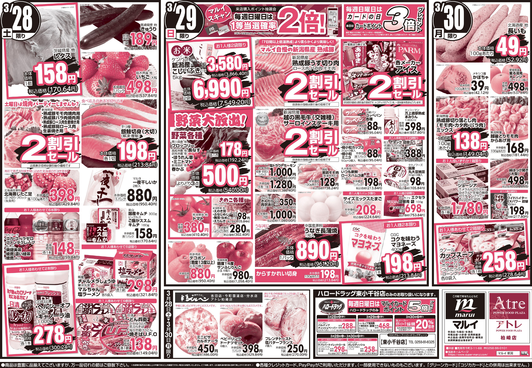 株式会社マルイ 【アトレ柏崎店チラシ】春の簡単ランチ 掲載期間:2026年3月28日〜2026年3月30日 中越 スーパーマルイ 画像をクリックして拡大 prev next セール・新店情報を見逃さない! ガタチラをホーム画面に追加して、 最新情報をすぐチェック▶追加方法はかんたん♪ 関連 春休みは簡単でおいしいランチが嬉しいわね!