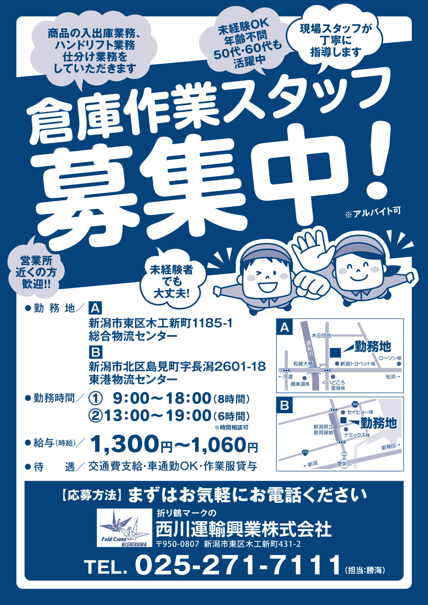 【西川運輸興業チラシ】倉庫作業スタッフ募集中!