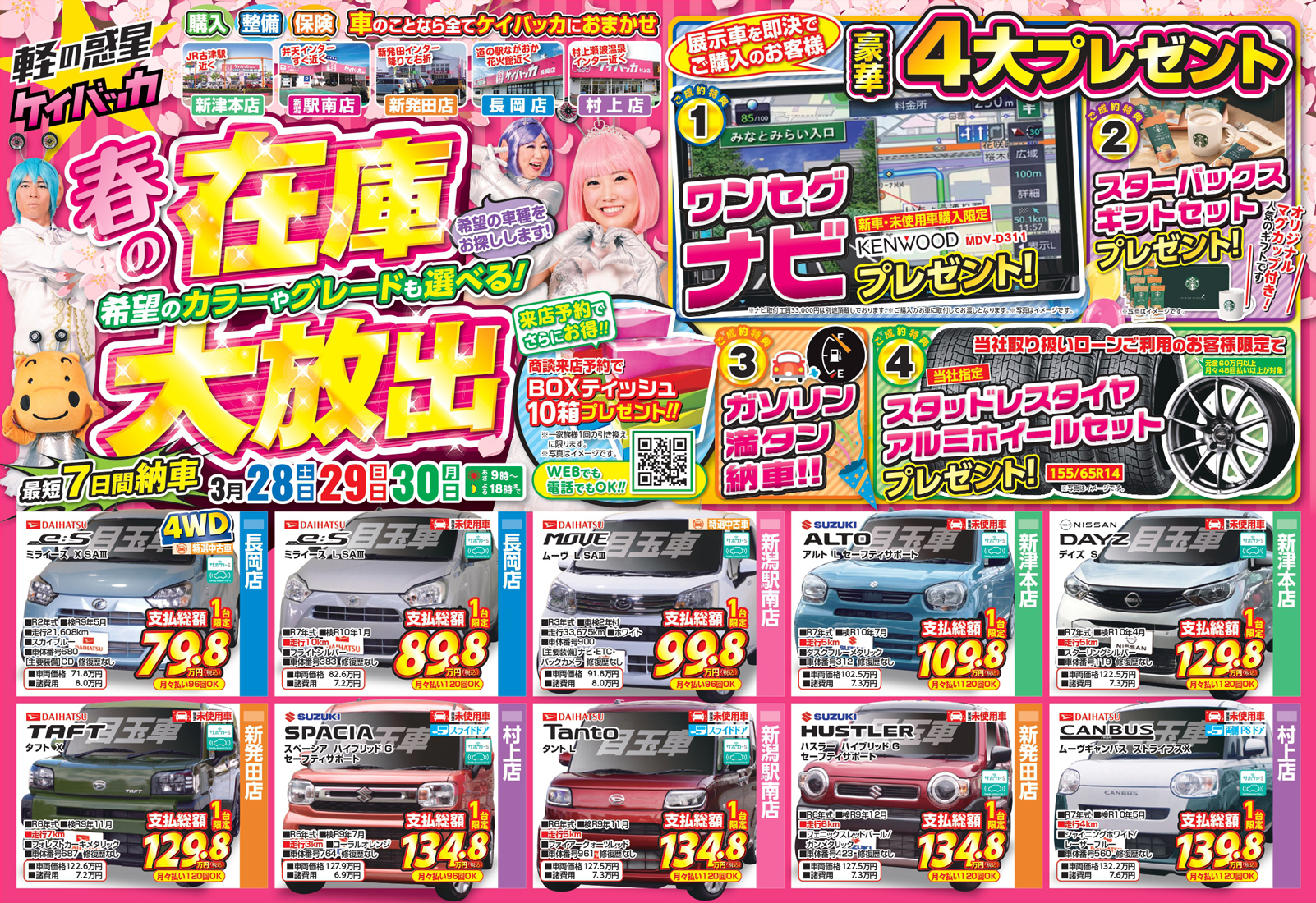 川内自動車 【ケイバッカチラシ】春の在庫大放出 掲載期間:2026年3月28日〜2026年3月30日 中越新潟市下越 車・カー用品 画像をクリックして拡大 prev next セール・新店情報を見逃さない! ガタチラをホーム画面に追加して、 最新情報をすぐチェック▶追加方法はかんたん♪ 関連 最短7日で納品してくれるんですって!