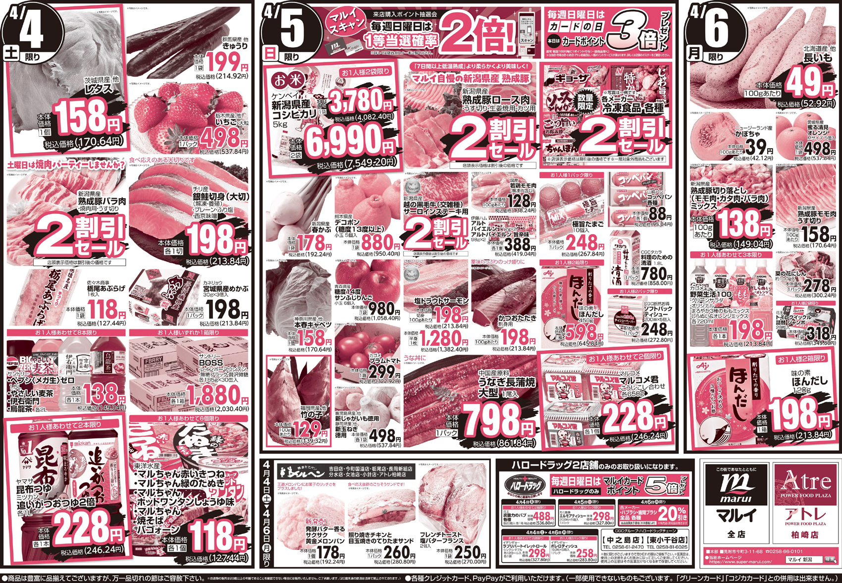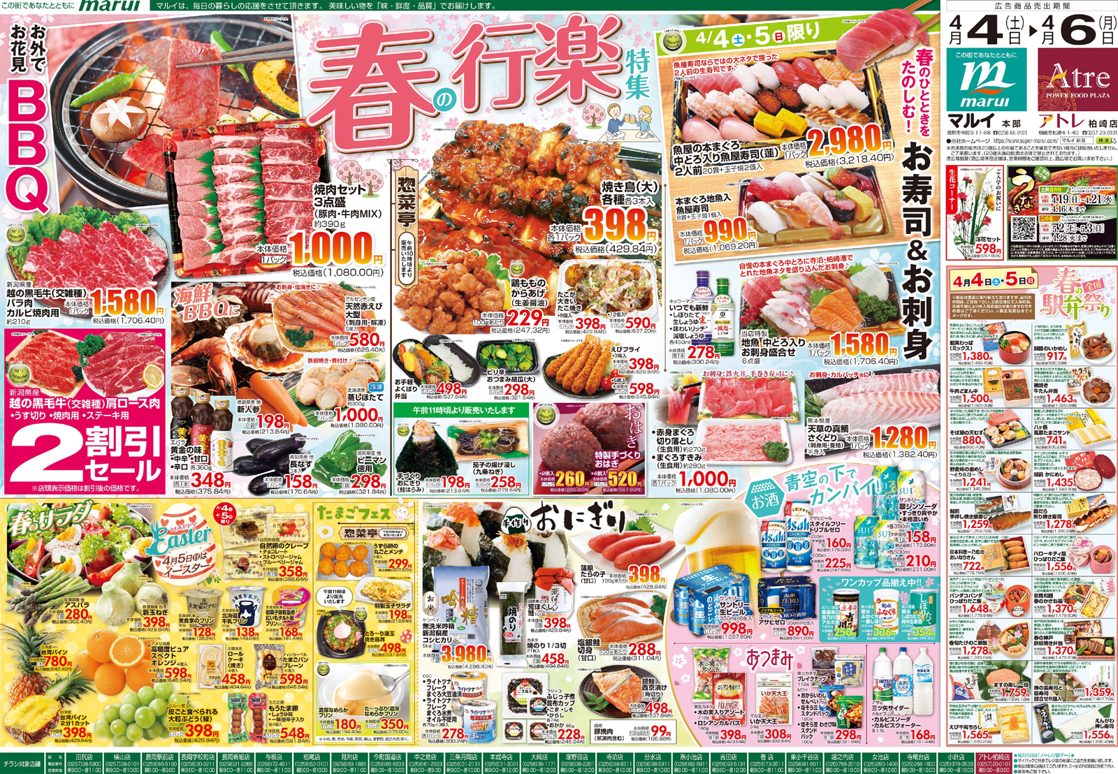 株式会社マルイ 【アトレ柏崎店チラシ】春の行楽特集 掲載期間:2026年4月4日〜2026年4月6日 中越 スーパーマルイ 画像をクリックして拡大 prev next セール・新店情報を見逃さない! ガタチラをホーム画面に追加して、 最新情報をすぐチェック▶追加方法はかんたん♪ 関連 「焼肉セット3点盛」いいわね~♪