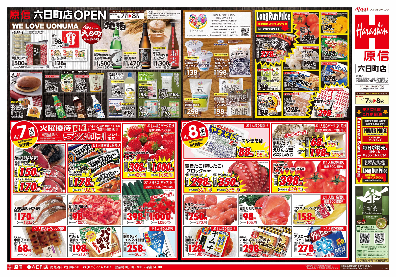 原信ナルス 【原信ナルス六日町店チラシ】OPEN第6弾 掲載期間:2026年4月7日〜2026年4月8日 中越 スーパー原信ナルス 画像をクリックして拡大 prev next 対象:六日町店 セール・新店情報を見逃さない! ガタチラをホーム画面に追加して、 最新情報をすぐチェック▶追加方法はかんたん♪ 関連 「肉汁ジュワ旨!生ハンバーグ」は家で焼くだけだから簡単ね!