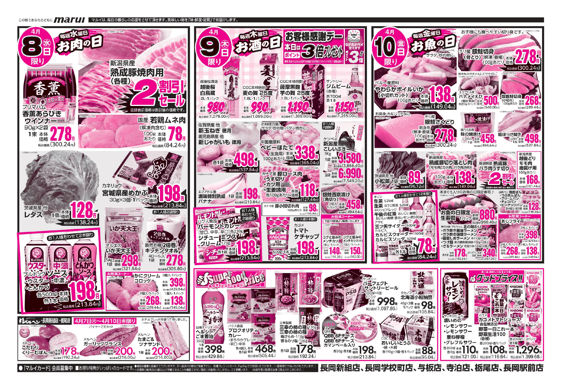 • 長岡新組店・長岡学校町店・与板店・寺泊店・栃尾店・長岡駅前店