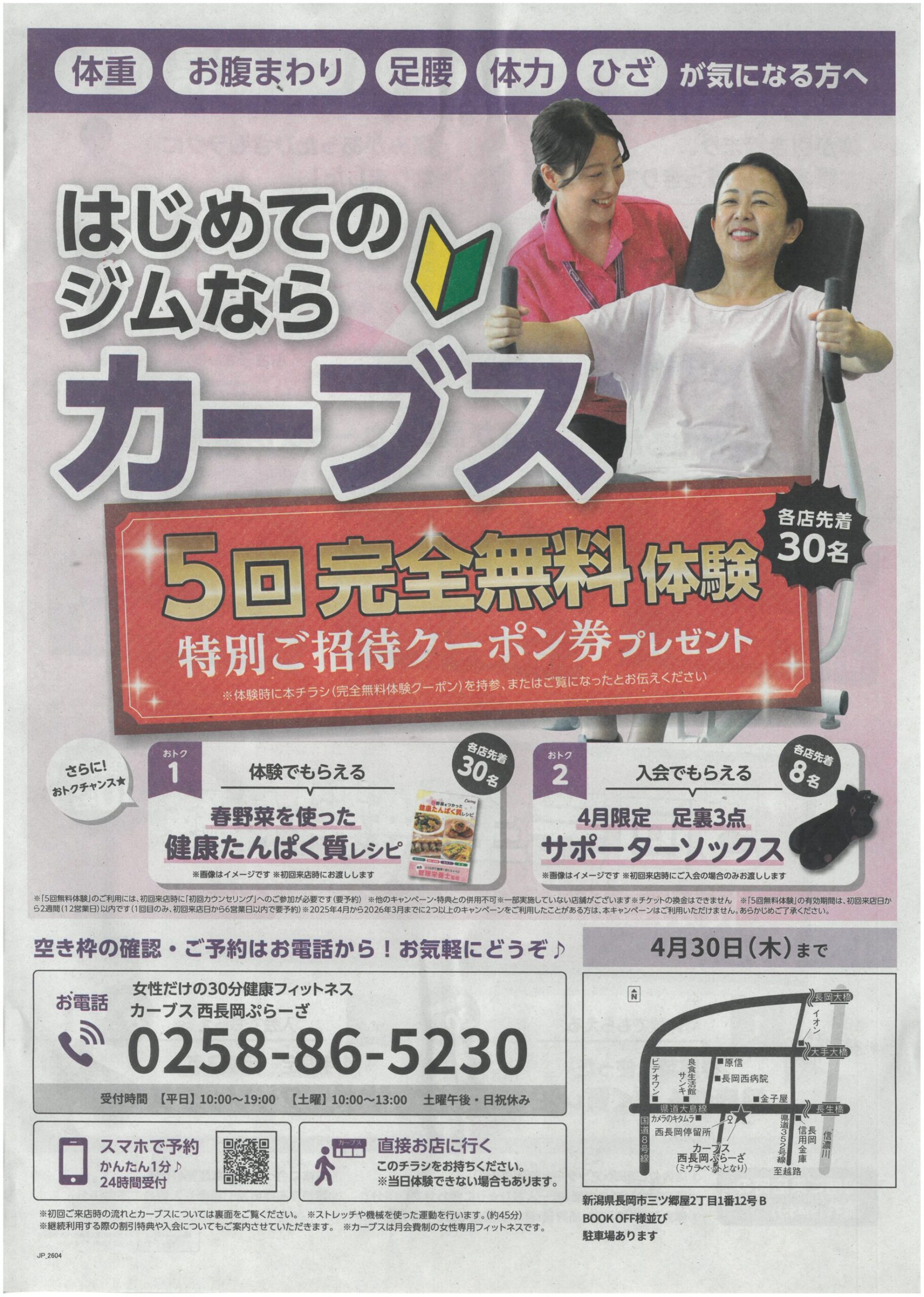 【カーブス西長岡ぷらーざチラシ】はじめてのジムならカーブス