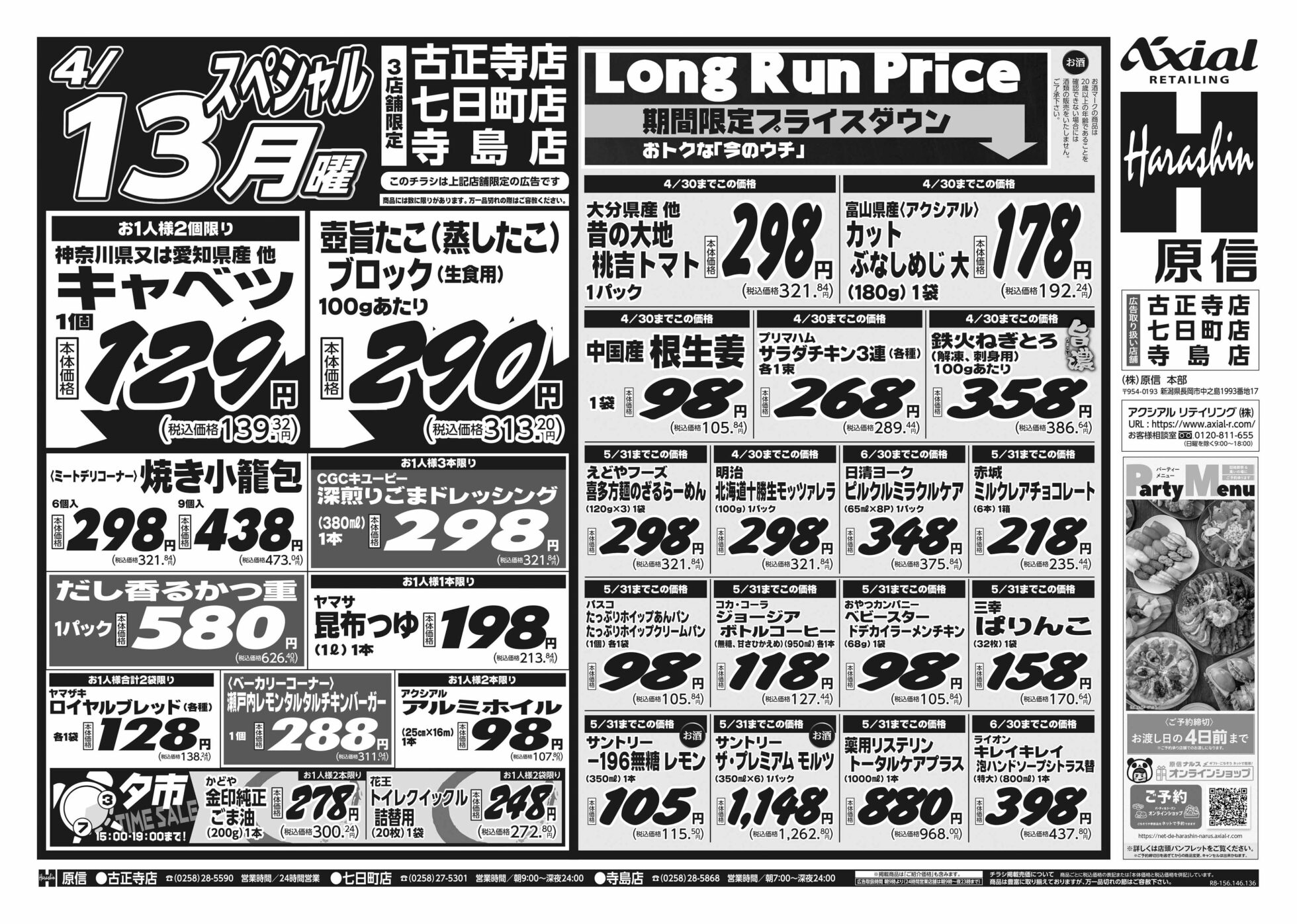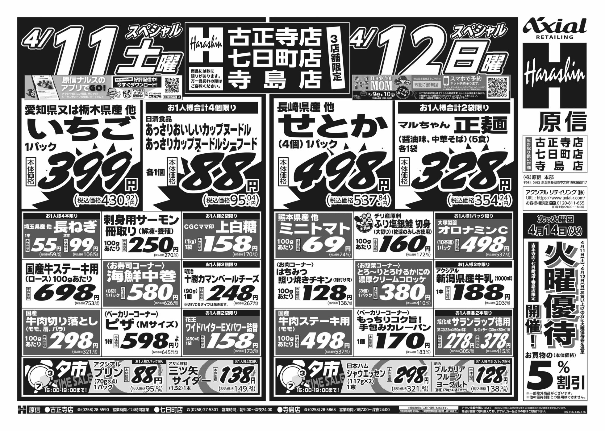 【原信ナルス古正寺店・七日町店・寺島店チラシ】土曜スペシャル/日曜スペシャル/月曜スペシャル